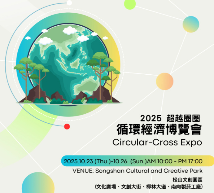 2025年10月23日(星期四)至26日(星期日),「2025超越圈圈 循環經濟博覽會」(Circular-Cross Expo 2025)將於臺北松山文創園區熱鬧登場。今年活動邁入第6年,過去年屆平均吸引超過5,000名觀展民眾。本次展覽同步串連「亞太循環經濟論壇暨熱點」(APCER Hotspot)作為重要周邊活動,透過政策、產業與社會三方鏈結,展現亞太區域循環經濟的合作能量與創新成果,歡迎對循環經濟議題有興趣的民眾及業者參觀。