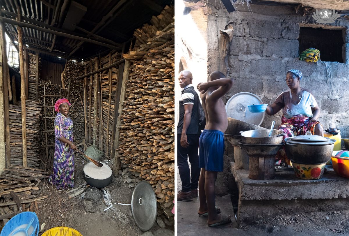 在巷弄中轉了個彎,突然看到一群人排排坐在路邊,捧著餐盤用餐,旁邊有一位太太坐在幾口大鍋之間。瑪格師姊解釋,那就是當地的「餐廳」——居民來這裡點餐、就地吃飯。在另一個轉角,則看到有人正用臼搗魚漿、炸製食物,這些都是準備在社區內販賣、或是拿到團隊早先經過的傳統市場去賣的商品。貧民窟的巷弄裡,生計與生活緊緊交織在一起。