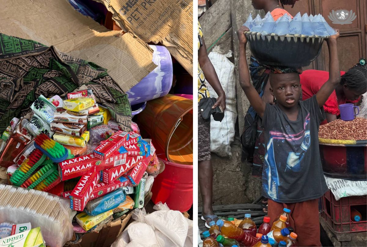 在人潮湧動的市場裡,車輛幾乎無法動彈。有一位路人看到團隊車輛及車身上明愛會的標誌,主動上前吆喝眾人配合,並請路中間的臨時攤販提起籃子暫時讓出行車道路,整個車程也耗時超過一小時。