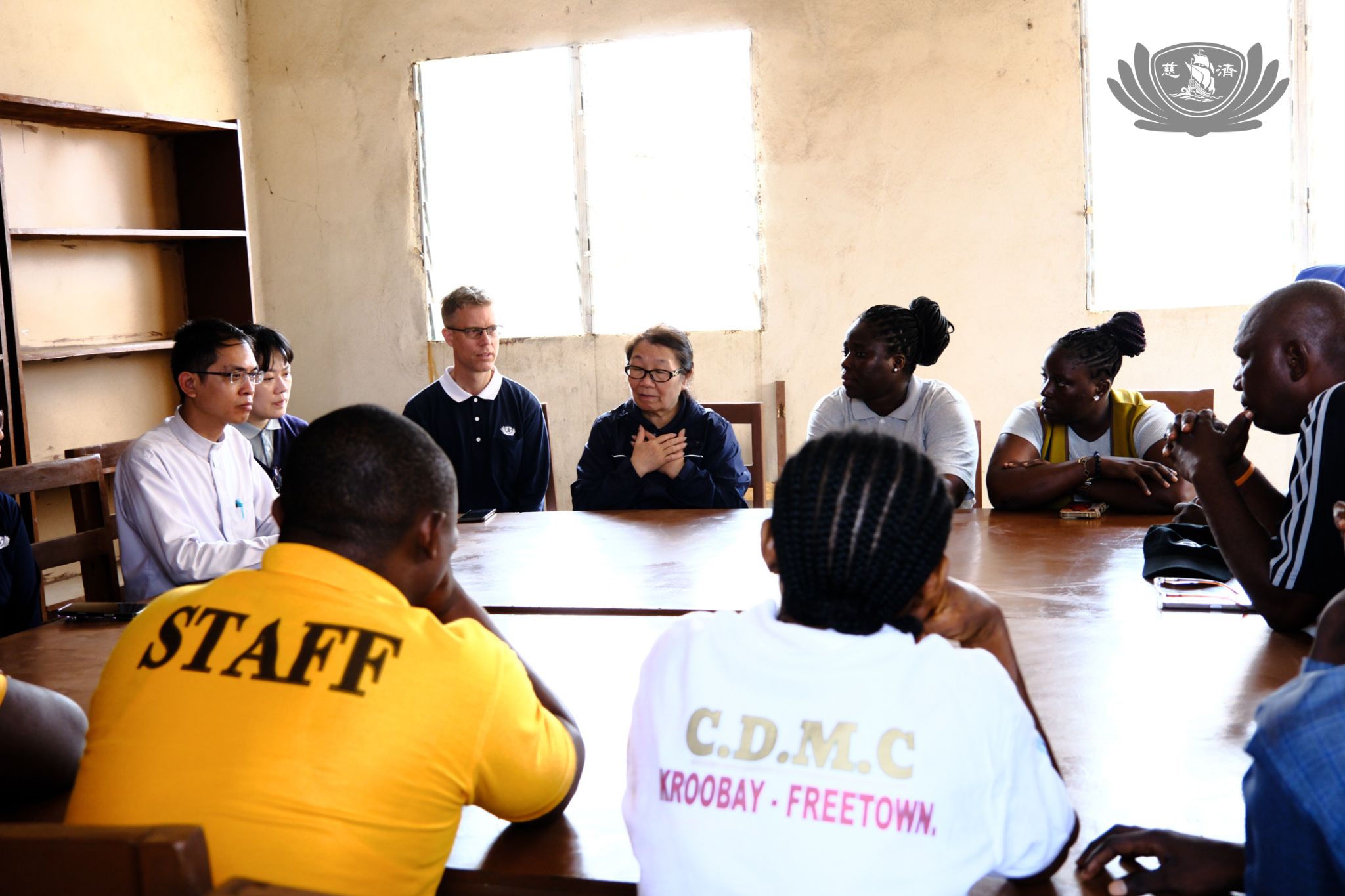 11位女孩在門口以致詞與歌聲迎接,身上穿著的正是去年美國慈濟運送至獅子山貨櫃中的愛心衣物。自由城明愛會彼得神父也特地前來陪伴,聆聽女孩們唱福音時,神情有如驕傲的老父親,深受她們的改變所感動。