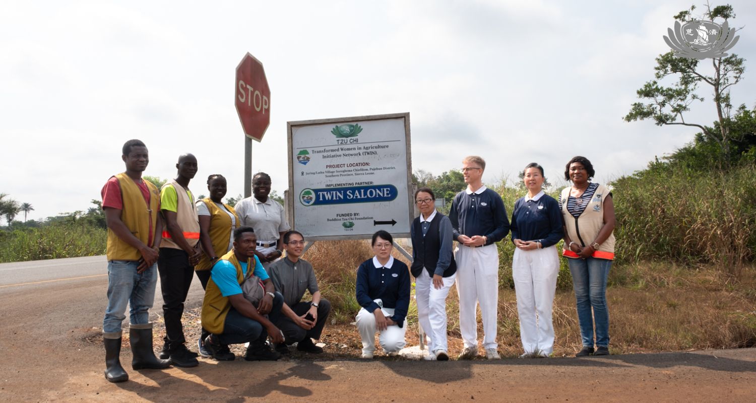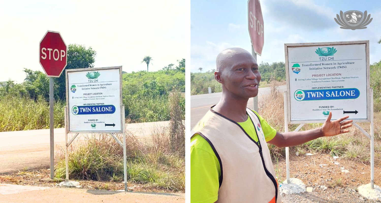 這是慈濟在獅子山的第二個農業試點項目地點——位於普杰亨區摩阿河(Moa River)兩岸的雙子村:朱林(Juring)與拉圖(Lathu)村。這次的合作夥伴並非蘭頤基金會,而是「獅子山婦女農業轉型倡議網絡」(TWIN Salone),該組織由慈濟志工馬薩奎(Mustapha Massaquoi)與現任專案經理坦巴(Rufus Tamba)共同創立。