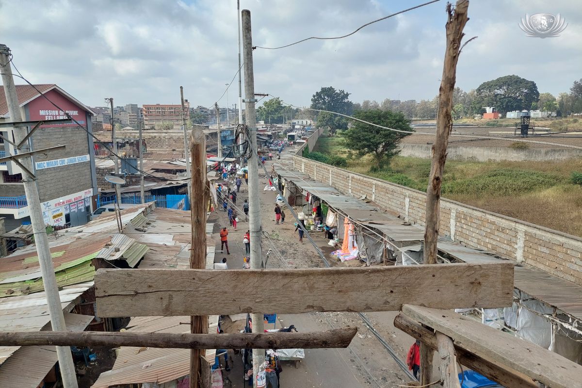 從頂樓望出去,是一片鐵皮屋頂連接著另一片鐵皮屋頂,綿延至遠處。當地居民說,每戶每月租金約2,000肯亞先令(約500元新台幣),5×7尺的空間最多住上十個人,來自全國各地的人仍不斷遷入,只為在首都謀一口飯吃。