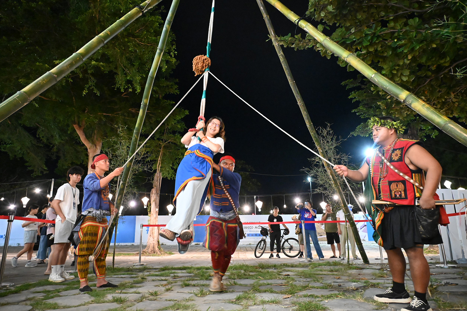 台東最有南島味的秋夜派對回來啦!臺東縣政府於於中秋節前夕4、5日一連兩天,在波浪屋舉辦年度主題活動「月亮聚」,今年主題聚焦 「永續」,4日傍晚由縣長饒慶鈴、原民會副主委杜張梅莊及立委陳瑩共同宣布開幕,邀請那屋瓦少女隊開場表演,現場提供民眾進行原住民族傳統鞦韆體驗。饒慶鈴指出,用音樂傳遞原住民族對自然的敬畏,與守護土地的信念,會場也不提供一次性餐具、以實際行動展現對環保的支持,邀請大家把握今(5)日最後一天活動,感受原住民族的文化魅力與深厚底蘊。