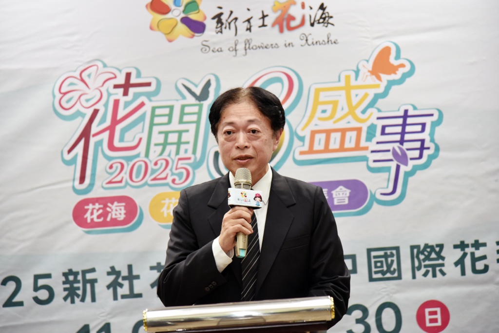 農業部於今(29)日召開記者會,邀請立法院副院長江啟臣、臺中市政府觀光旅遊局主任秘書廖偉志與農業局科長黃育珍、金門縣政府產業發展處副處長李文堆及和平區農會總幹事蕭金木蒞臨與會。農業部林家榮主任秘書表示,新社花海已邁入第18屆,活動除賞花觀景外,並結合地方產業資源、推動山城地區農遊整合與行銷,串聯鄰近山城四個農會、五個鄰近商圈及大臺中山城與海線十一大休閒農業區,推廣地方文化與節慶特色,包括東勢新丁粄節、新社九庄媽繞境,以及梅花、櫻花、梨花、桃花、油桐花與螢火蟲等四季花季盛事,展現山城全年魅力,預期可帶動超過200萬人次賞花人潮,創造12億元以上經濟效益,提升台灣中部地方農村休閒與永續發展價值。