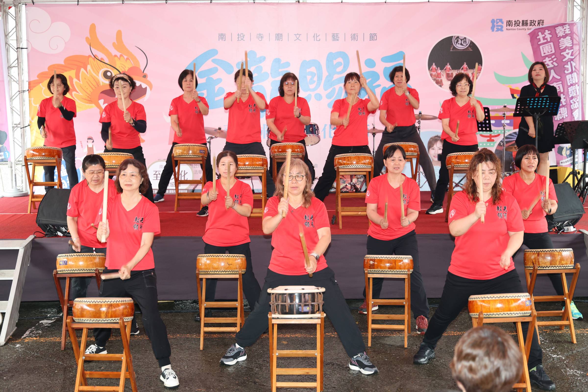 這場盛大的寺廟文化藝術盛會,由金龍山法華寺住持蔡坤茂主持,縣府民政處長林琦瑜及縣議員林憶如都全程參與,縣府衛生局、社勞局、警察局也響應設立多個政令宣導攤位,還有法華慈善會等公益團體設攤,提供趣味筊杯體驗、推拿按摩,及各項結緣品、農特產品展售義賣,雖然春雨連綿,卻擋不住虔誠的香客與民眾熱情參與。