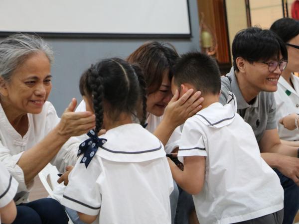 「讓我們拍手歡呼迎接您,歡迎您到慈濟來...」幼兒園畢業生們列隊拍手唱著歡迎歌迎接每位家長到來,今晚是慈大附中幼兒園畢業系列活動---在學校住一晚。 孩子的小手牽著家長們進入會場,主持人用營火和拜火曲...