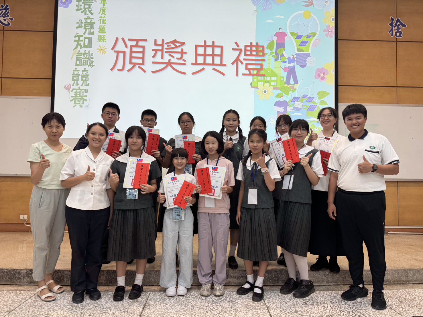 不同於往年,今年的準備工作在暑假便已提前啟動,團隊共進行五次培訓,透過分配影片、製作共筆筆記、彼此出題與模擬練習,讓環境知識更為扎實,也增進了合作默契。正因如此,十五位選手中共有十二位成功晉級第二階段,並在決賽及PK賽的激烈競爭中脫穎而出。最終,高二知足林玟妡勇奪全縣高中組第二名,取得代表花蓮縣參加全國賽的資格。