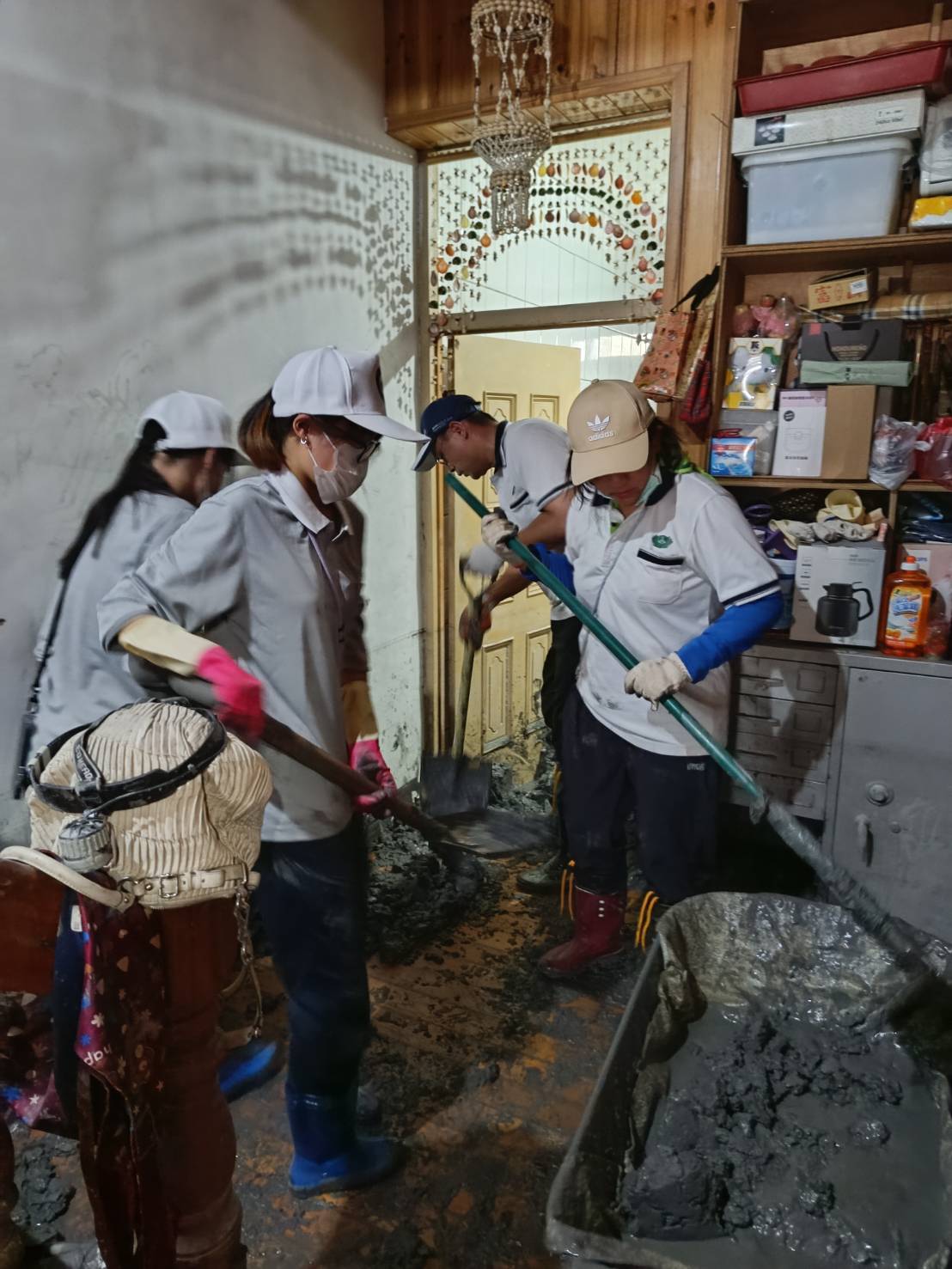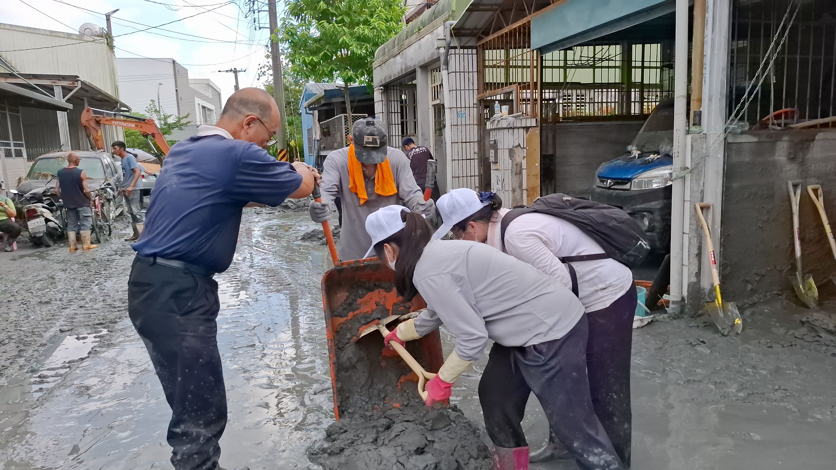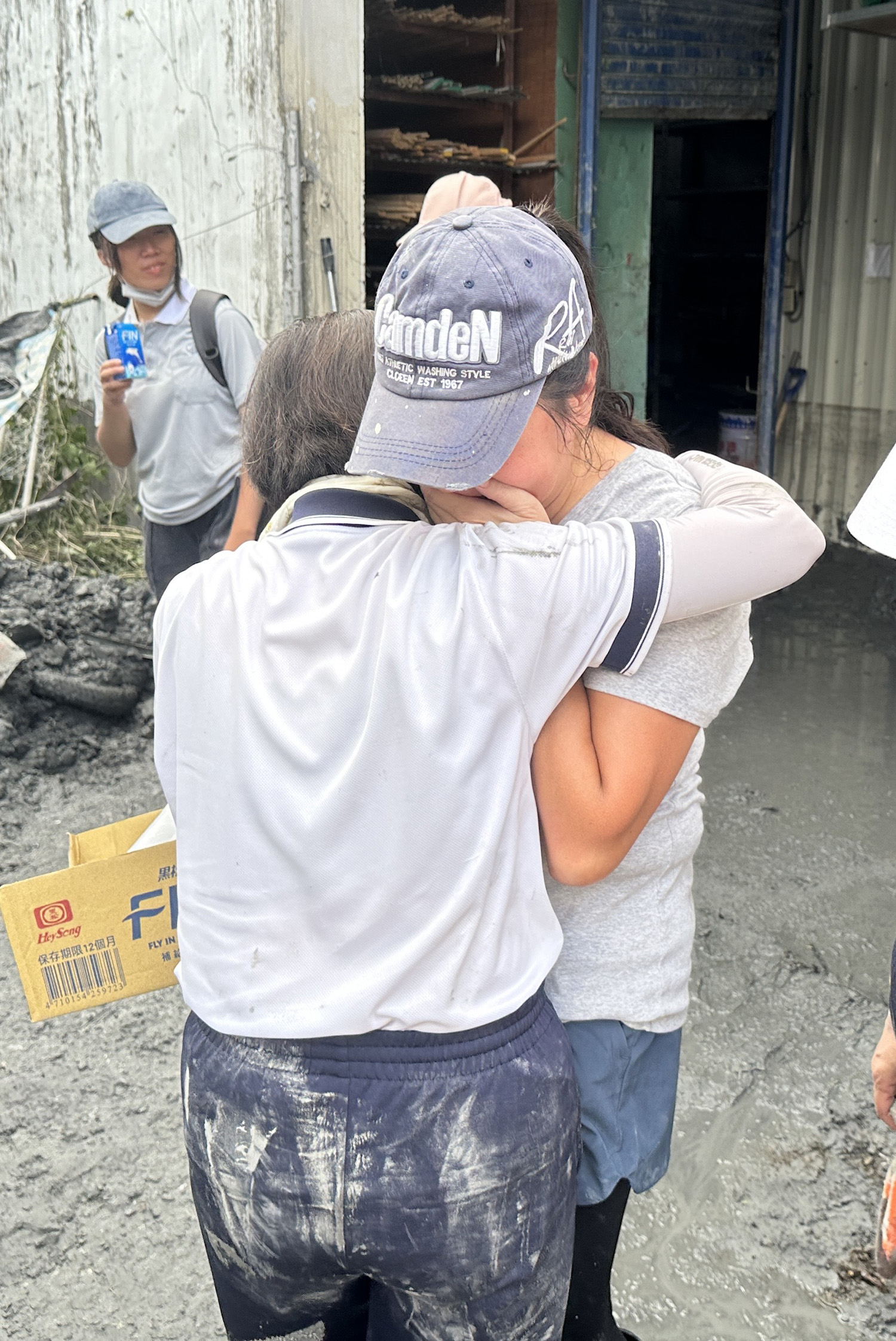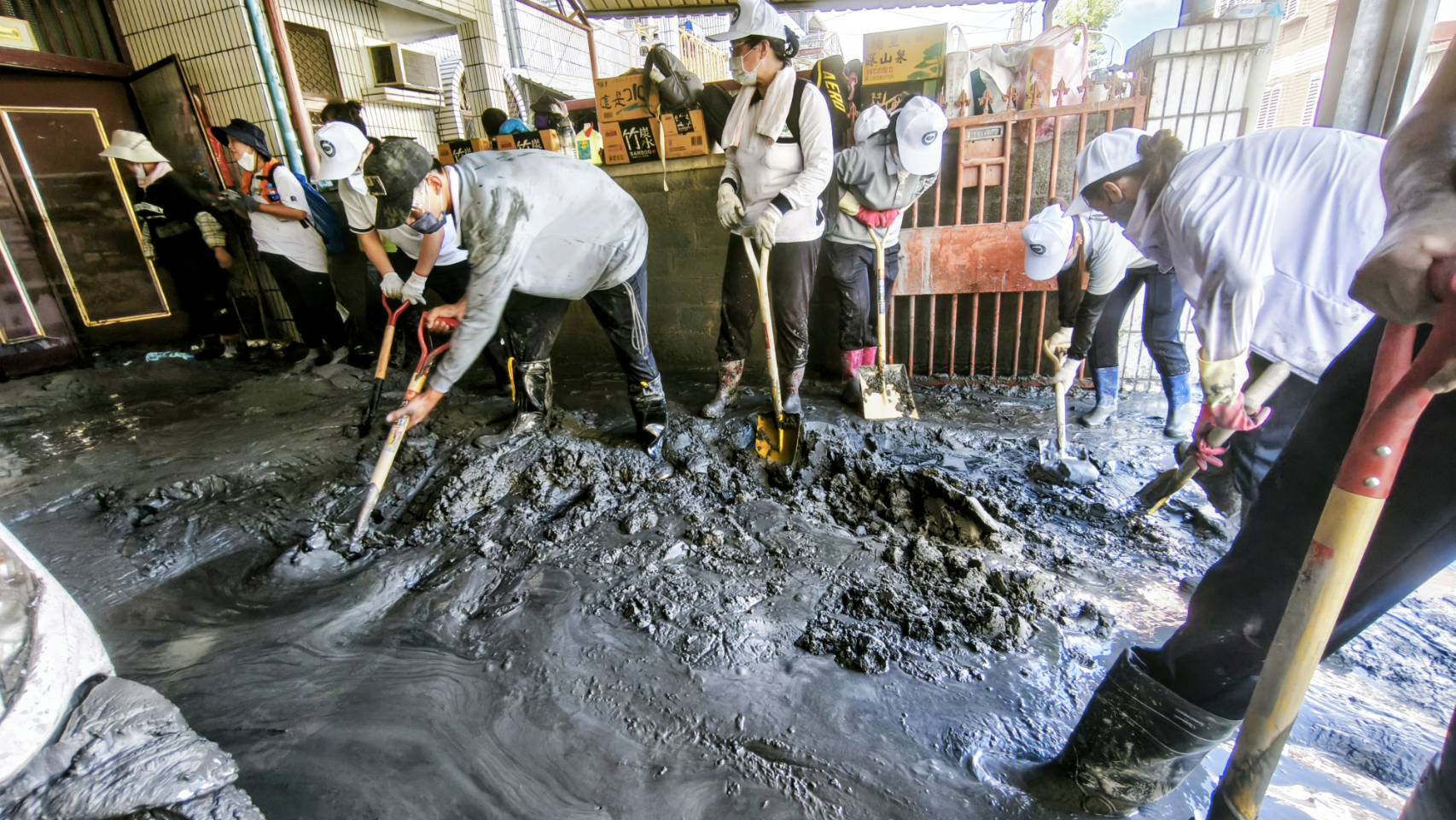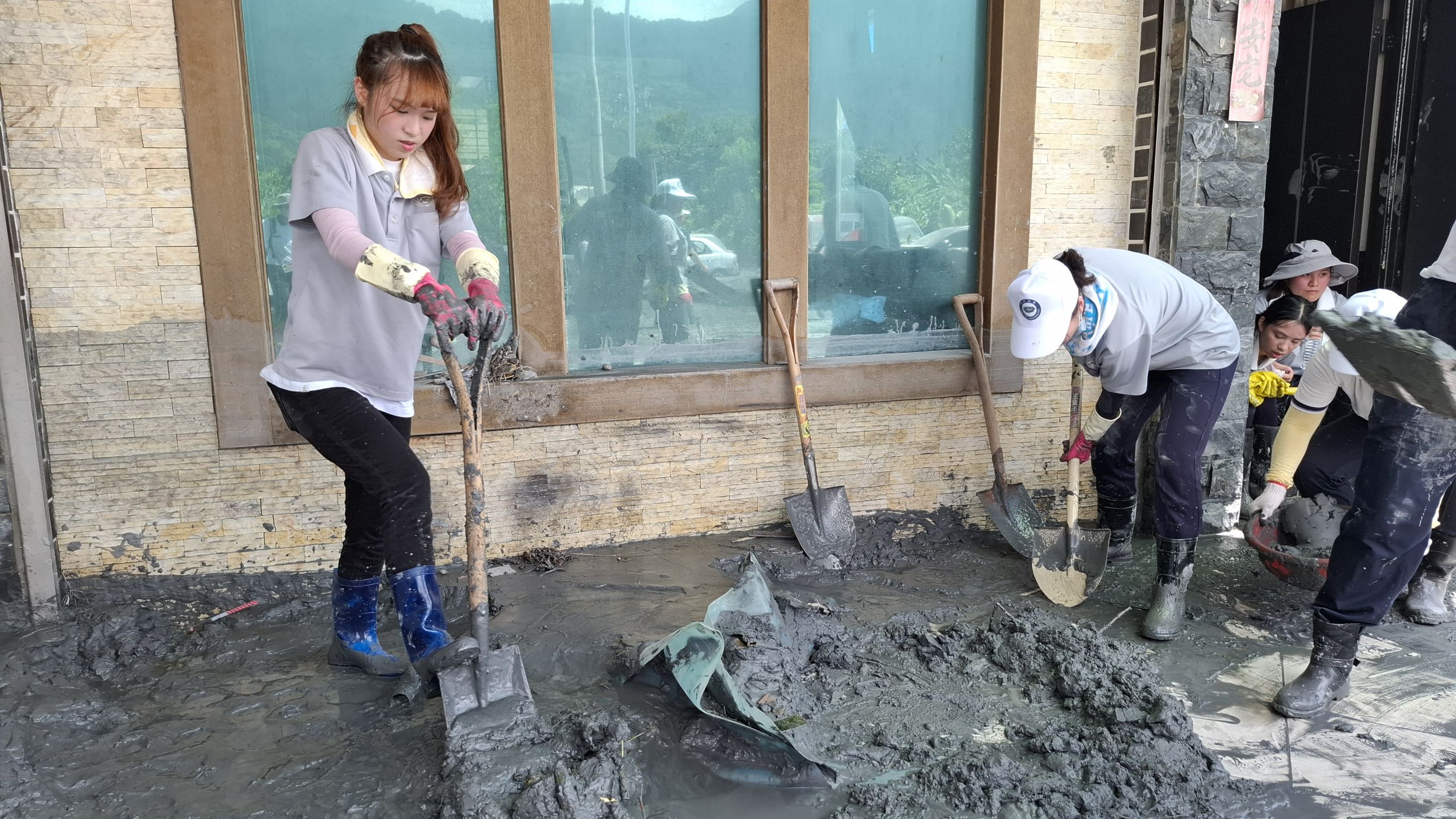踏入災區才發現,至今仍有不少住家淤泥高達50公分,相當於成人膝蓋高度。卡在空間狹窄、泥濘難清,外加悶熱潮濕,慈大師生只能輪番入內清掃。一旦彎腰鏟到沒力氣,就立刻換手支援。慈大附中國小部學務處同仁葉家維表示,清理了好幾天,終於有外援來幫忙了,非常感恩慈大師生的揮汗如雨,總算清出一條通道。