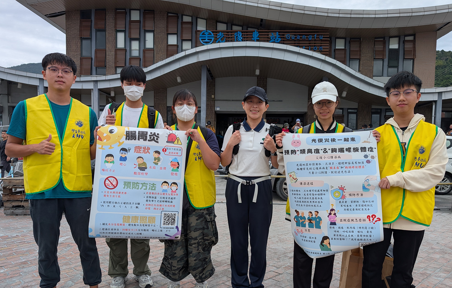 歐陽安琪老師於9月28日帶著學生到光復當協助清淤後,她又以護理專業身分帶領學生進行社區衛教宣導,提醒若曾接觸災後泥水並出現發燒、頭痛或肌肉痠痛等症狀,應立即就醫並主動告知接觸史,以利及早診治。