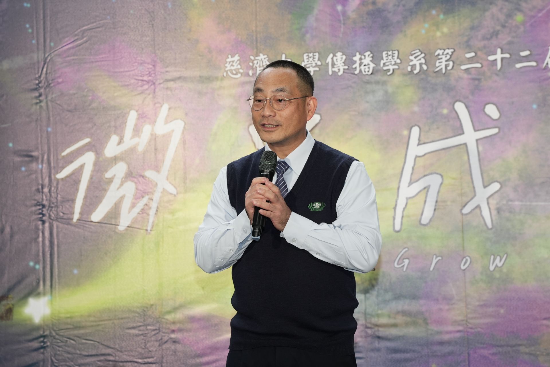 慈大傳播系廖志宏主任致詞表示,畢業展是傳播系每年最盛大的展演活動,他勉勵同學:「畢業展不是結束,而是一個新的開始,這些作品將是你們未來走向更美好人生的開端。」