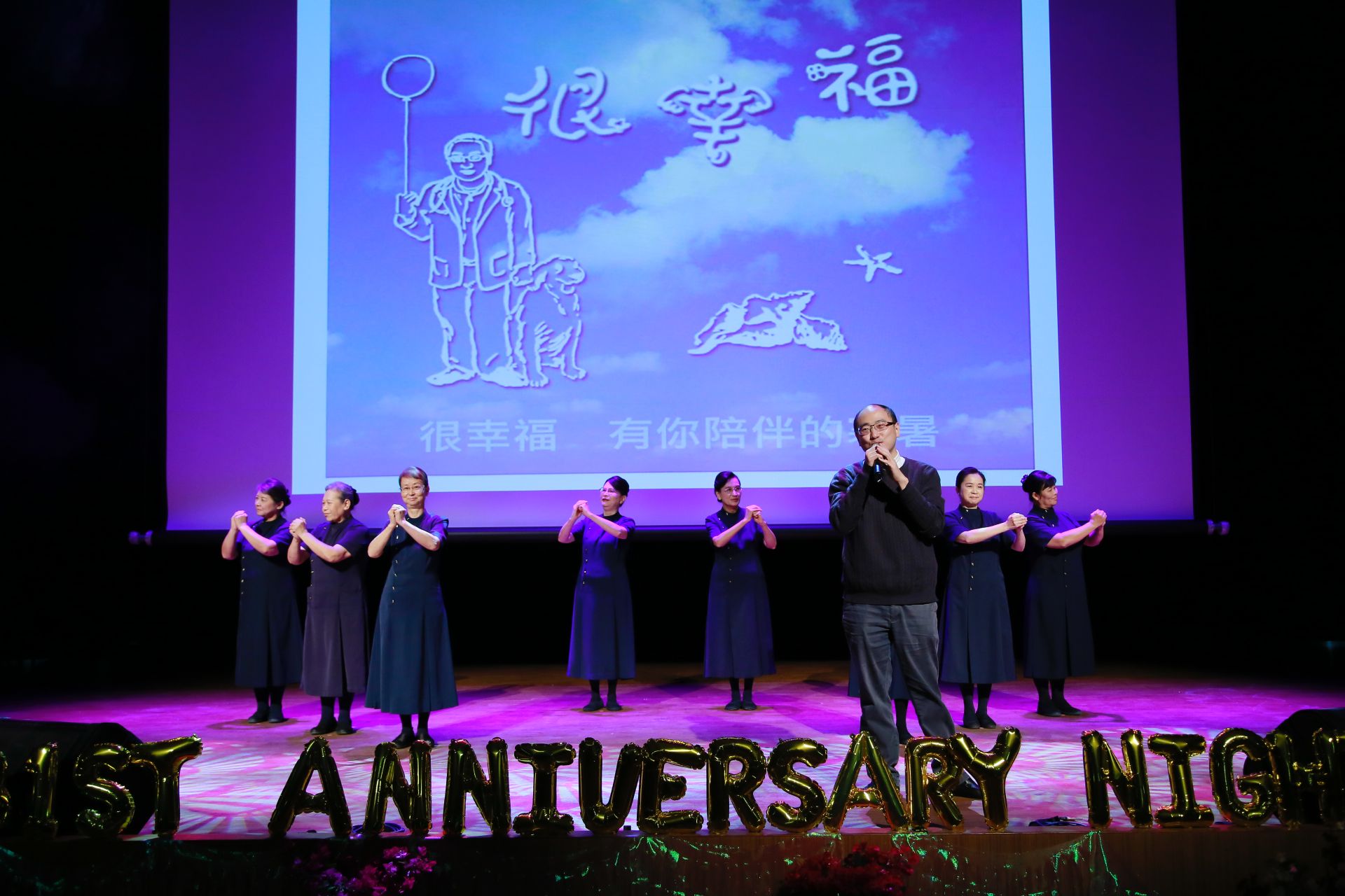 87級醫學系校友孔睦寰與同學創作的「很幸福」,是他大五時送給學長姐的畢業禮物。這首紀錄友誼的歌曲不僅在慈大校園流行,隨著慈濟歌選在全球傳唱。今晚由他與慈誠懿德會手語演繹,目前在大林慈濟醫院服務的孔睦寰再度登上校園舞台演唱,他說:「很開心能有這個機會,用這首歌回到母校,祝慈濟大學生日快樂。」