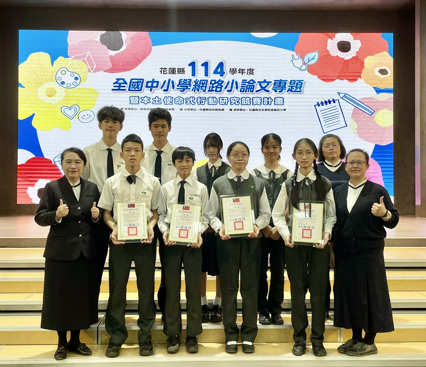 慈大附中國中部學生於「太平洋盃第12屆全國中小學網路小論文專題暨本土使命式行動研究競賽」中表現優異,憑藉紮實的研究歷程與多元的探究主題,勇奪一項銀獎、三項銅獎及四項優選,充分展現學校推動跨領域學習、探究實作與人文關懷的教育成果。