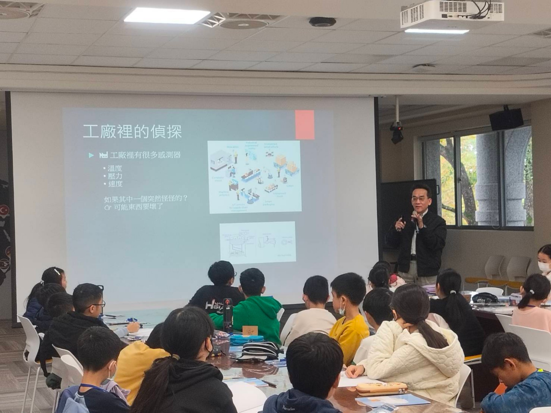 國小組則由簡子超助理教授帶領,透過「遊戲化學習」認識人工智慧。簡子超利用「Quick, Draw!(限時塗鴉)」讓學生體驗AI的影像辨識能力,更透過「AI for Oceans」遊戲,讓小學生化身AI訓練師,親自教導電腦分辨海洋生物與垃圾。孩子們在分辨「魚」與「寶特瓶」的過程中,深刻體會到「機器學習」的原理:如果餵給AI錯誤的資料,它就會產生錯誤的判斷,不僅解構了科技運作,更從小建立正確的科技倫理觀。