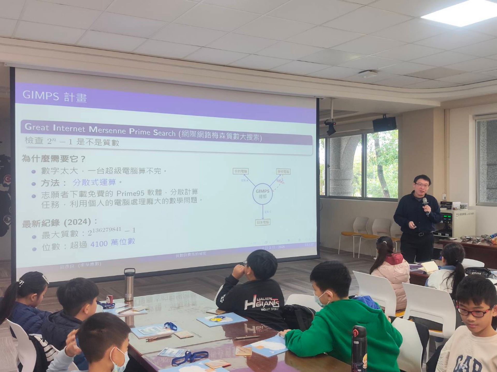 專長代數密碼學的官彥良助理教授,將艱澀數論轉化為直觀的「積木遊戲」。他不僅帶領學生用積木理解質數,更溯源三百年前的「費馬小定理」,揭開現代 RSA 密碼系統的神祕面紗。隨後的「紅眼謎題」邏輯挑戰,更引發全場熱烈辯論,讓學生在思辨過程中,深刻體會數學證明所需的嚴謹邏輯。
