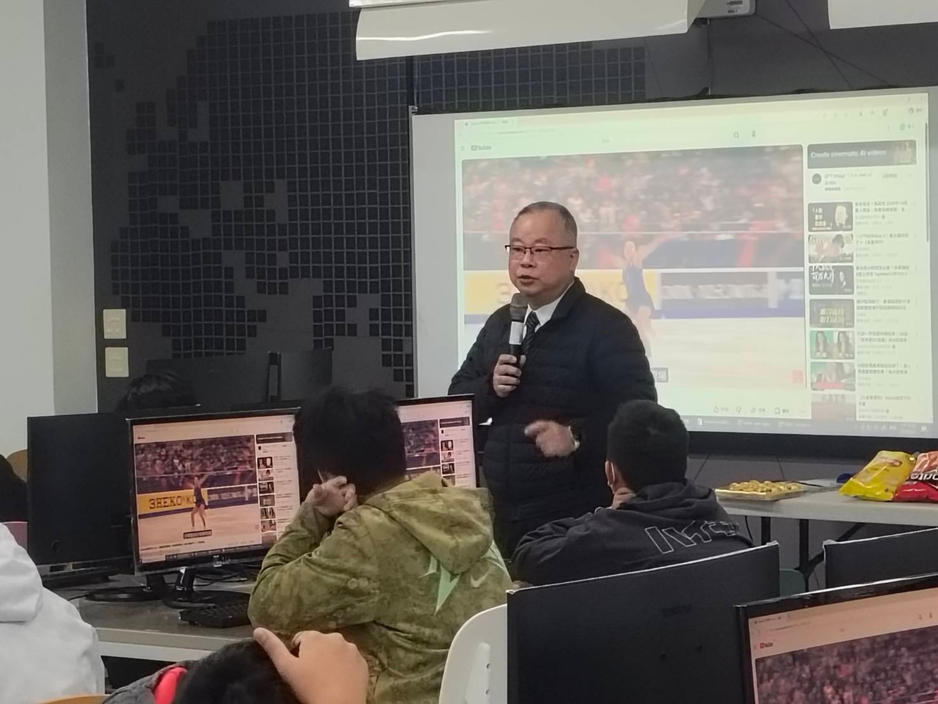 下午課程由慈濟大學資管系兩位教授接棒,針對不同年齡層進行分齡教學。在國中組課程中,賴志明助理教授開設「AI 智囊團特訓」,強調 AI 的成效取決於使用者的作文與邏輯能力。他示範利用「提示工程(Prompt Engineering)」命令 AI 模仿孔子或吳宗憲的口吻解析長文考題,並教導學生透過 NotebookLM 將課後筆記轉化為「專屬家教」自動出題。賴志明助理教授提醒學子,手機不應只是娛樂,而是口袋型的諮詢專家:「未來的強者,是懂得何時放下手機思考,何時拿起手機利用 AI 的人。」