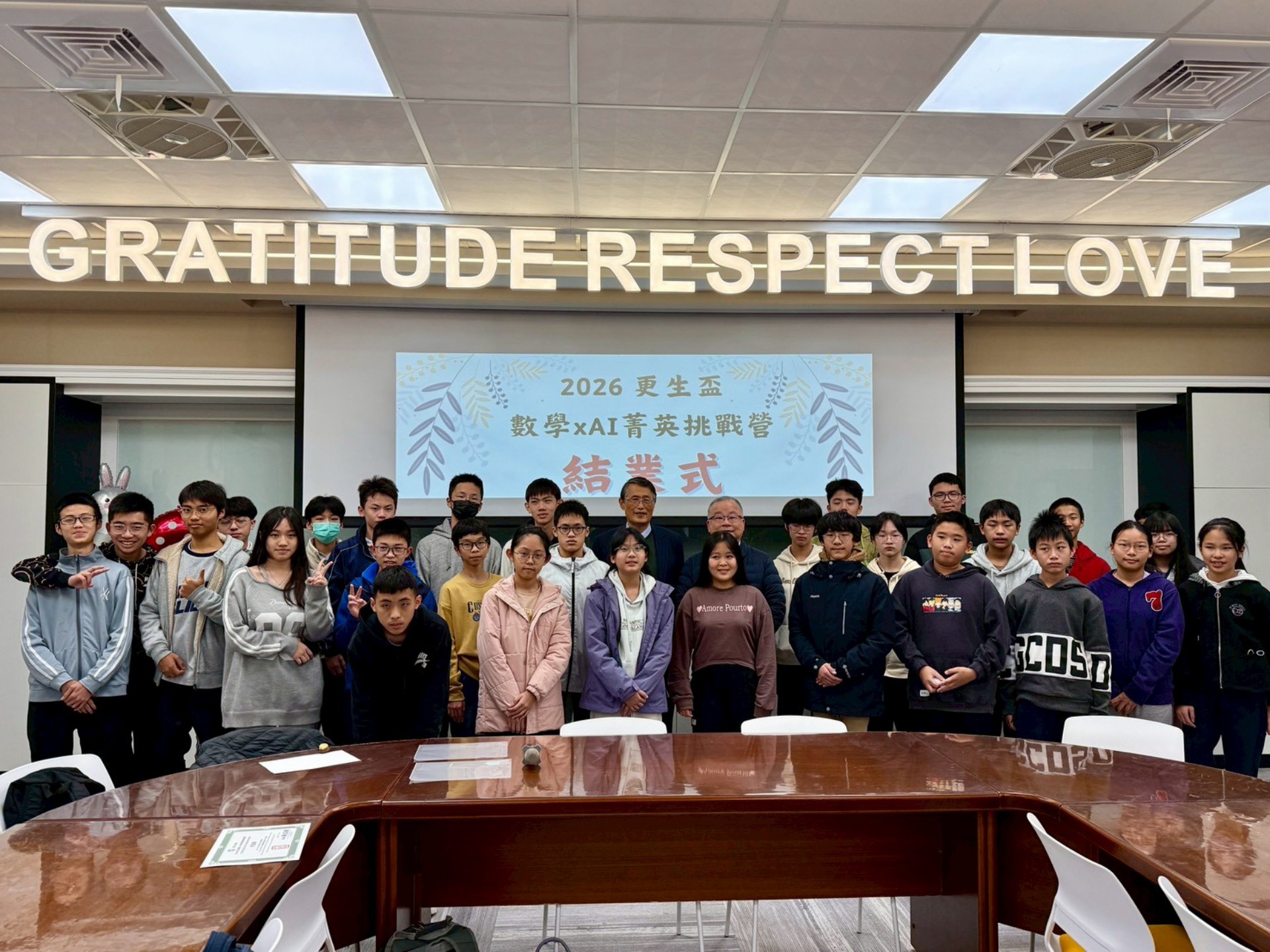 由更生日報主辦、慈大附中承辦的「2026更生盃:數學×AI營隊」,二月二日於慈大附中全球公民講堂盛大登場。營隊匯聚了來自花蓮各國中、小的五十四位菁英學子,由國立東華大學應用數學系與慈濟大學資訊科技與管理學系五位教授聯手授課,引領學生從大數據偵探解謎到AI指令實戰,展開一場顛覆傳統的科學之旅。更生日報社長謝立德於下午親臨結業式頒發證書,勉勵學子在科技浪潮中掌握「思考」的關鍵力量。