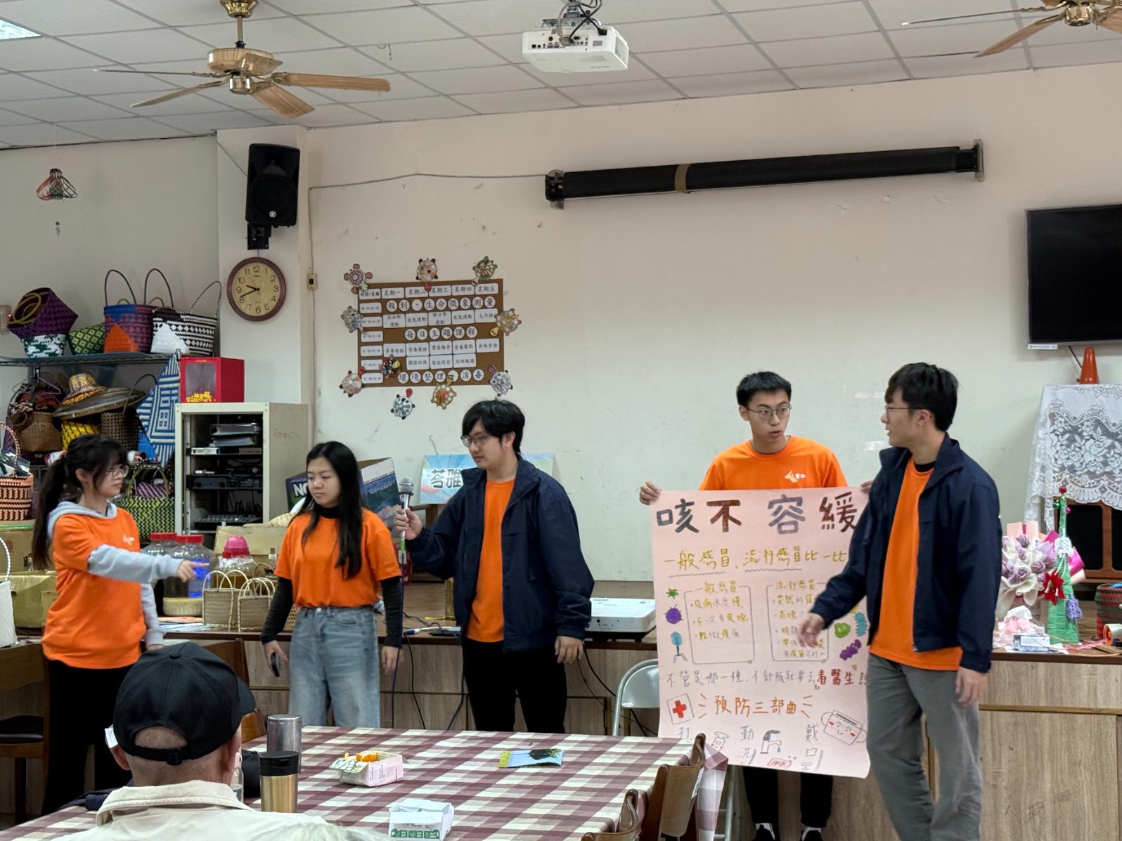 「松浦文化健康營」這次出隊學生來自醫學系、藥學系、護理系等,他們透過家訪觀察、與當地的文健站負責人討論,設計貼近生活的衛教課程,今年課程主要針對入冬低溫,教導長輩分辨流感與感冒,並宣導防跌秘訣。