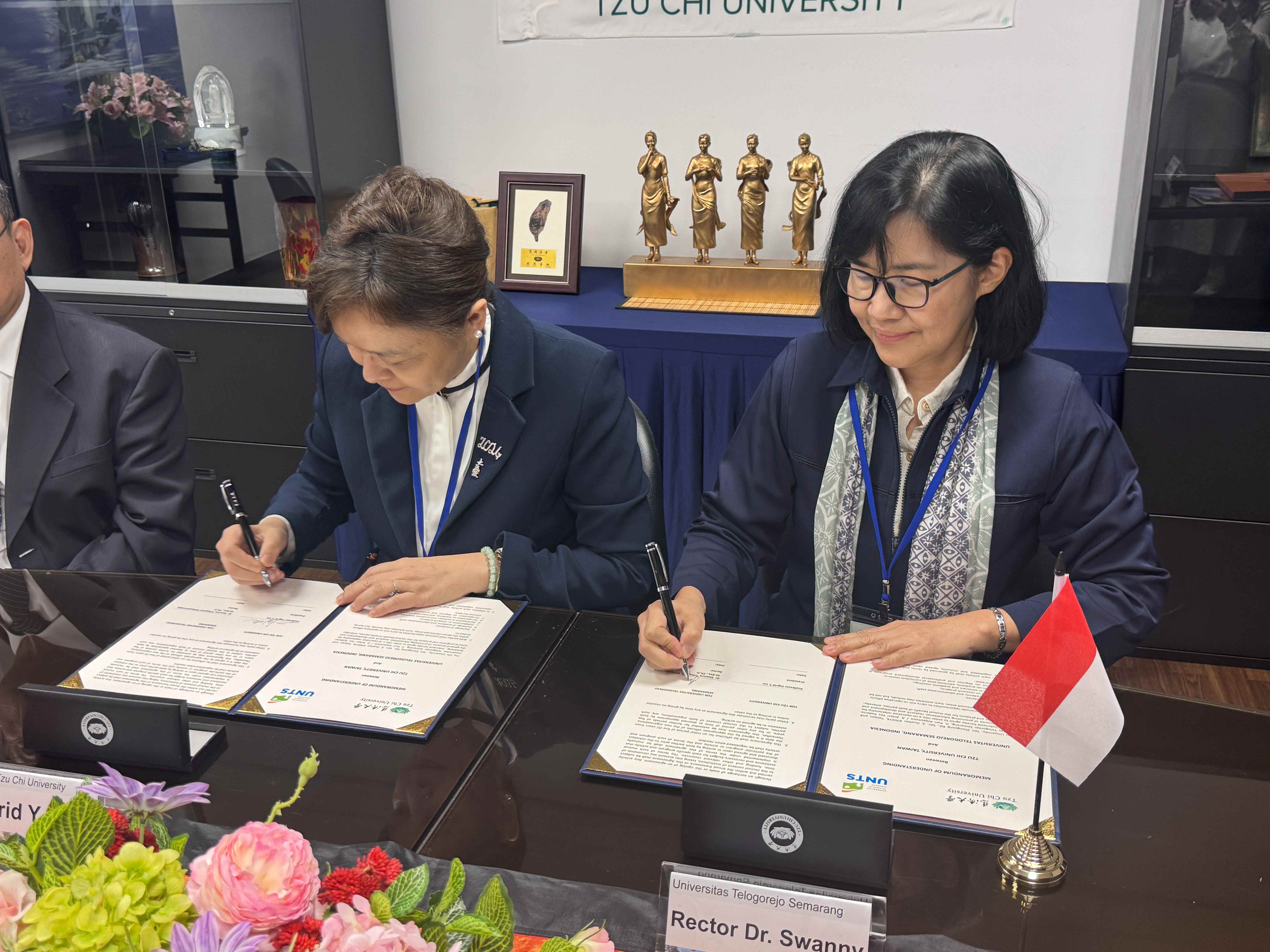 慈濟大學與印尼Telogorejo Semarang大學3月6日簽署MOU,雙方將在教育、研究發展及文化交流等領域建立合作關係,尤其是兩校都有深厚的醫護教育基礎,期待逐步推動各項合作計畫,共同為國際醫護教育發展努力。
