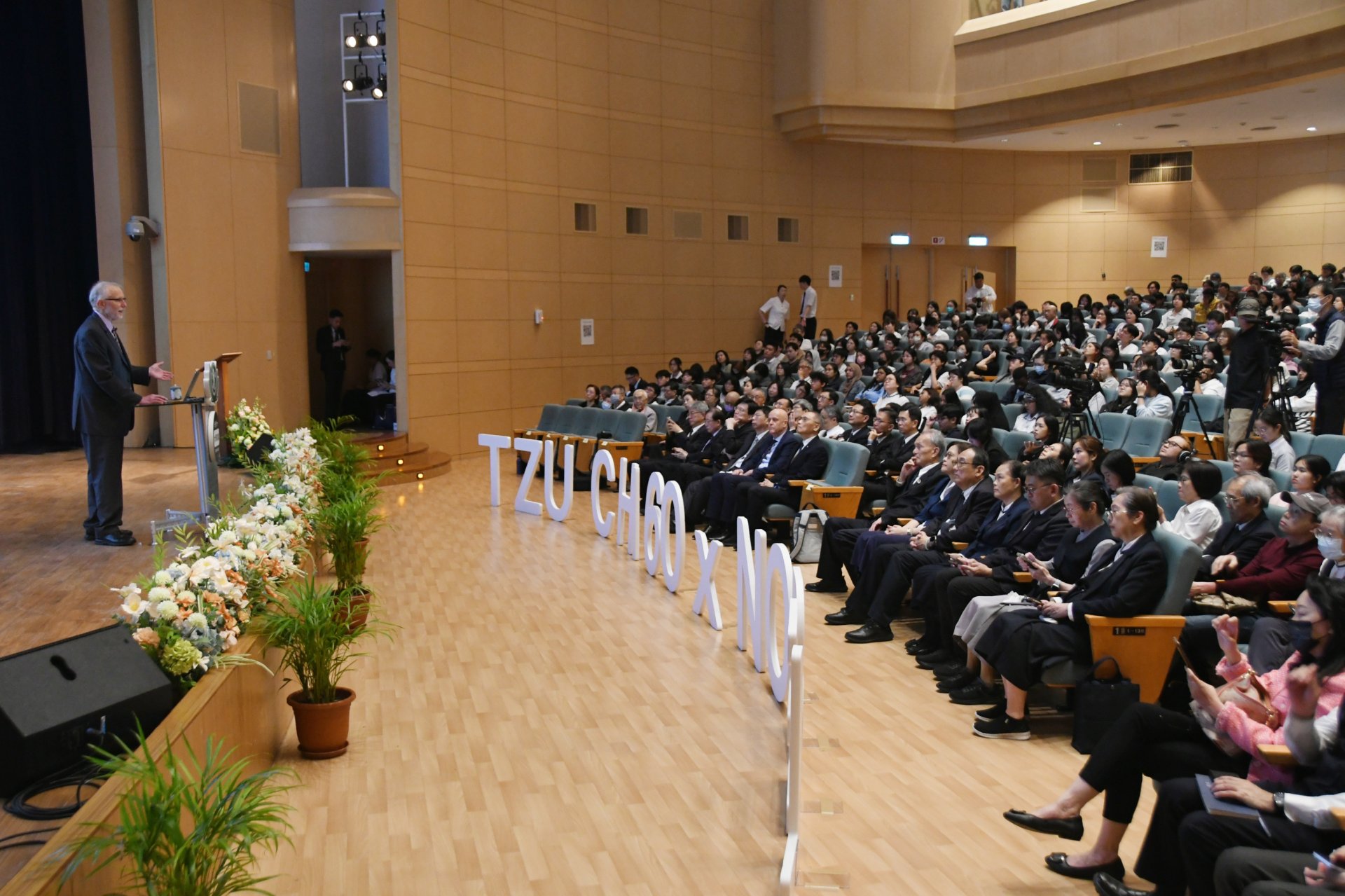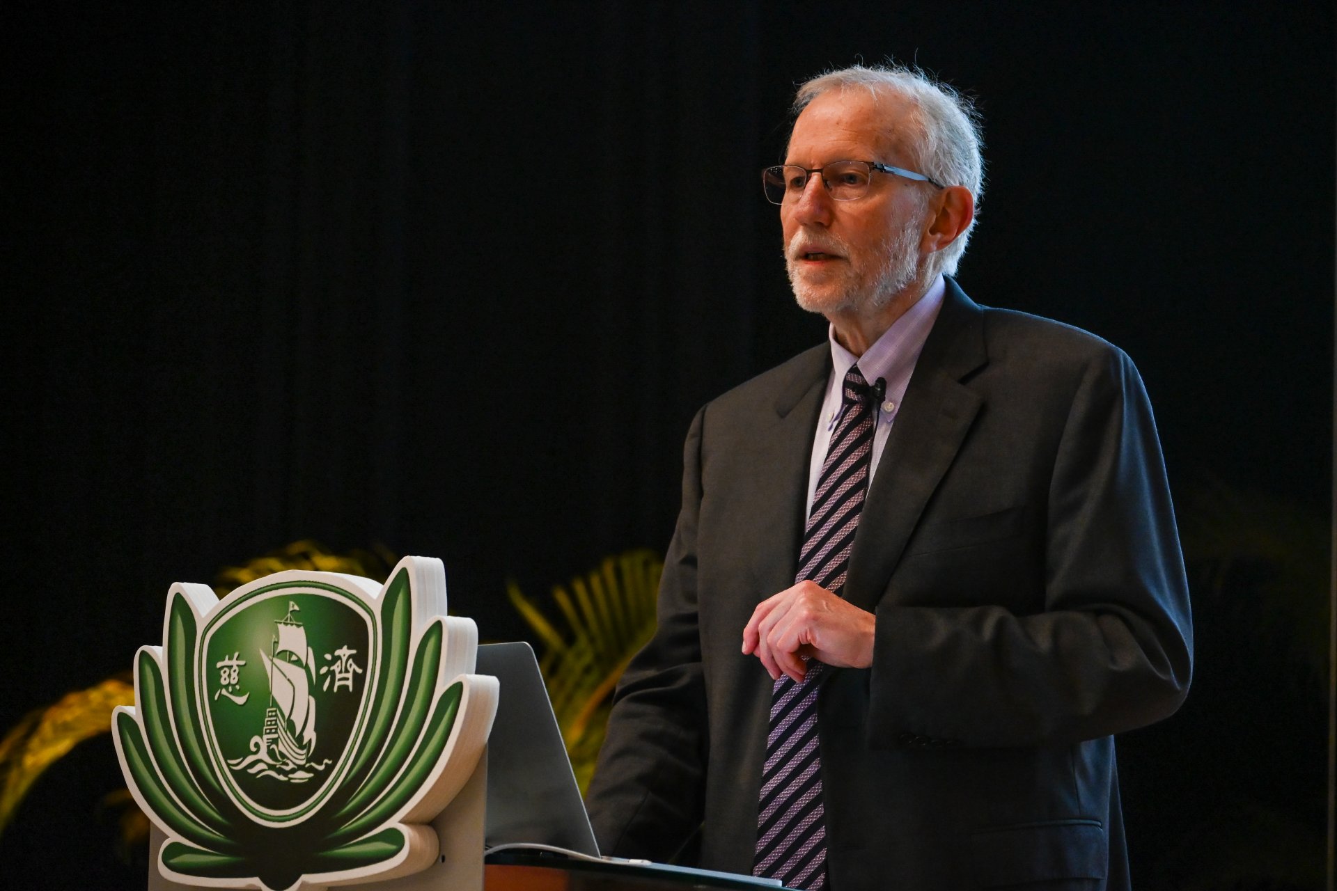 2020年諾貝爾生理或醫學獎得主查爾斯.賴斯(Charles M. Rice)教授,於30日受邀至慈濟大學發表題為「全球傳染病:成就與挑戰」的專題演講。賴斯教授不僅分享了C型肝炎病毒(HCV)研究的關鍵突破,更與現場逾800位慈大師生及高中生親切互動。看見許多年輕學子到場,賴斯教授難掩喜悅,鼓勵大家在未知傳染病的威脅下,應勇於投入科學研究,共同守護人類健康。