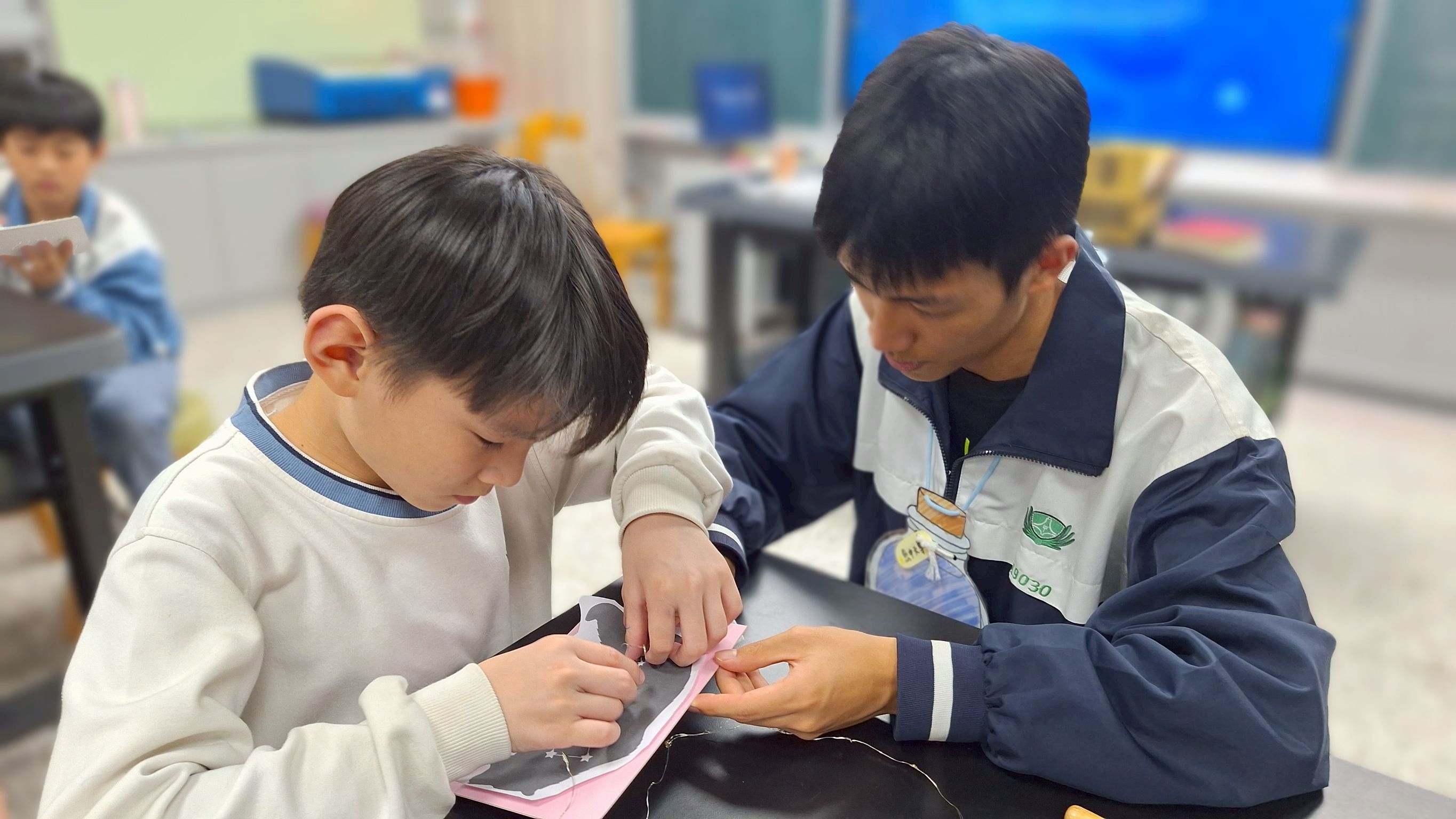 走進專業天文館、接觸高階觀測器材,孩子們在高中部學長姐的帶領下,以闖關方式展開一場宇宙冒險,從「認識四季星空」、「編織星座」、「探索慈濟小行星」到「組裝天文望遠鏡」,一步步揭開星空的神祕面紗,讓原本遙不可及的天文知識,變得生動又好玩。