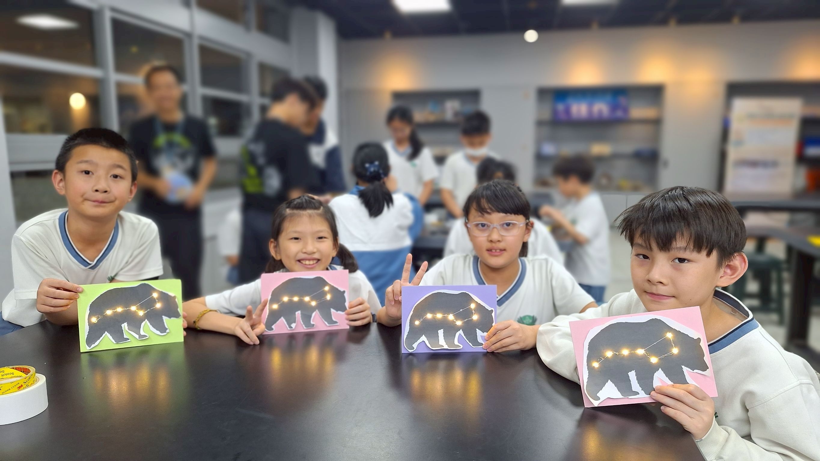 在「編織星座」活動中,孩子們化身星空藝術家。透過巧手製作星座燈,將遙遠的北斗七星縮影為掌心中的點點光芒。當星座燈亮起的剎那,映照在孩子臉上的不僅是成品的喜悅,更是對未知宇宙的無限嚮往。