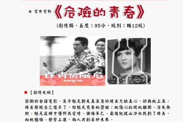 【高雄】鼓山台語電影院共賞《危險的青春》本片為台語經典電影,描寫浪子與純真少女之間的愛情與成長故事。從相遇相戀,到誤解分離,情感真摯動人,呈現青春的衝動、慾望與責任掙扎。在現實壓力與內心渴望之間,主角歷經迷惘與悔悟,最終選擇面對自我,追尋...