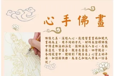 【高雄】心手佛畫心手佛畫 佛像之美,深植人心。敦煌壁畫畫稿和現代畫搞為主,用不同的方式,材料來詮釋佛像中傳達佛法的涵意,讓佛法深入自心。在臨墓蓮、寶蓮臺、觀自在菩薩、四臀觀音,各階段當中,體驗到「觀自在」心靈上的平安、和谐與...