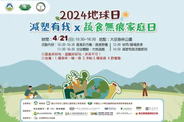 【台北】2024地球日 減塑有我x蔬食無痕家庭日2024地球日 減塑有我x蔬食無痕家庭日 時間:4/21(日)10:30~16:30 地點:大安森林公園 10:30-16:30蔬食趴市集、蔬食野餐 12:00快閃/暖場表演11:30-16:30分站體驗、大地遊戲14:50減塑有我活動節目 蔬食好好吃、遊戲好好玩,非來不可! 自備:1.環...