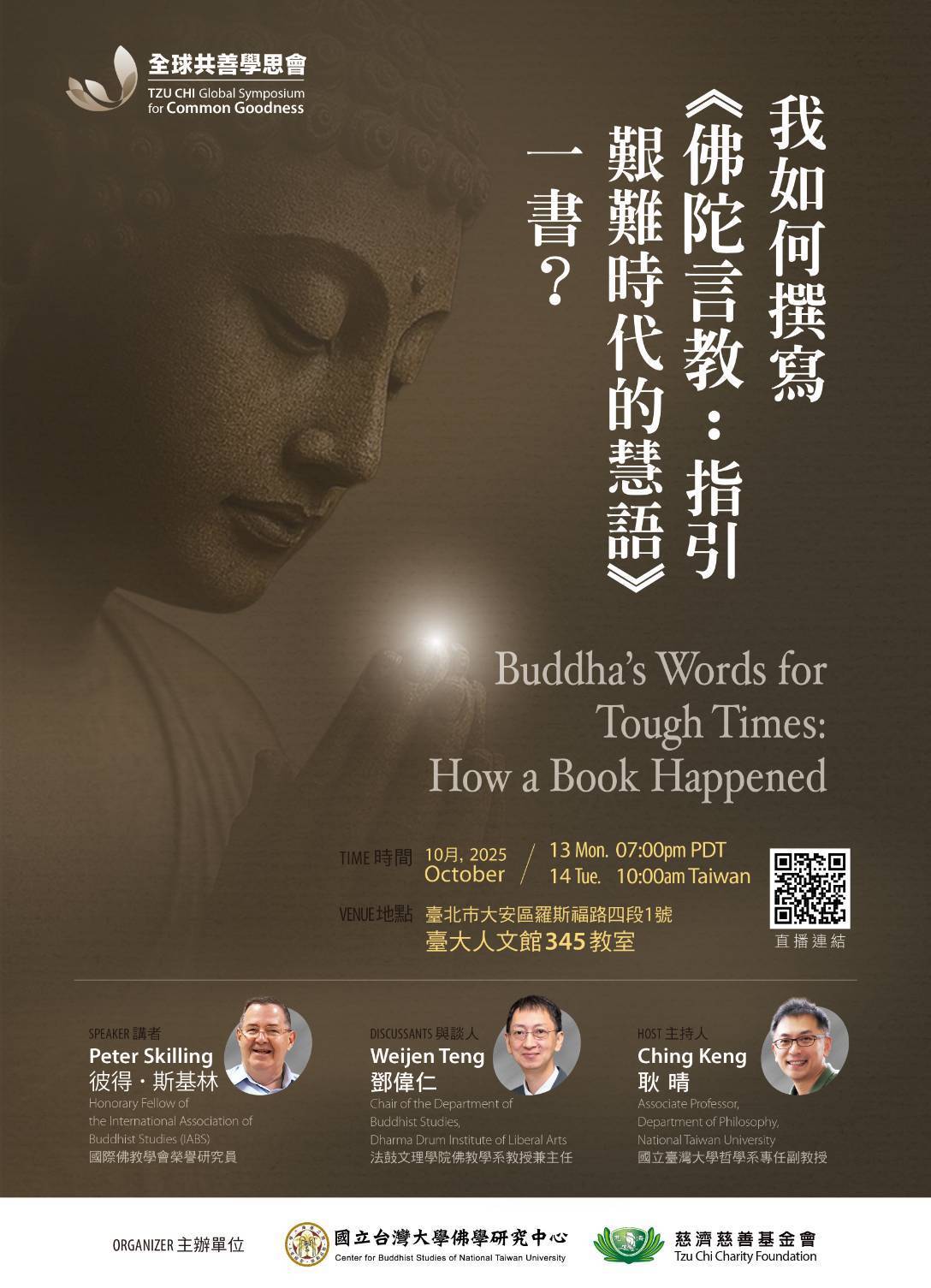 本講座邀請到本書作者彼得・斯基林教授(Prof. Peter Skilling)──全球最受尊敬的佛教文獻權威之一,曾任法國遠東學院教授,並在哈佛、牛津、加州大學柏克萊分校等校任教。教授將親自分享這本書的誕生過程:如何挑選經典、如何詮釋古老智慧,讓兩千五百多年前的佛陀語錄,在今日依然觸動人心。
