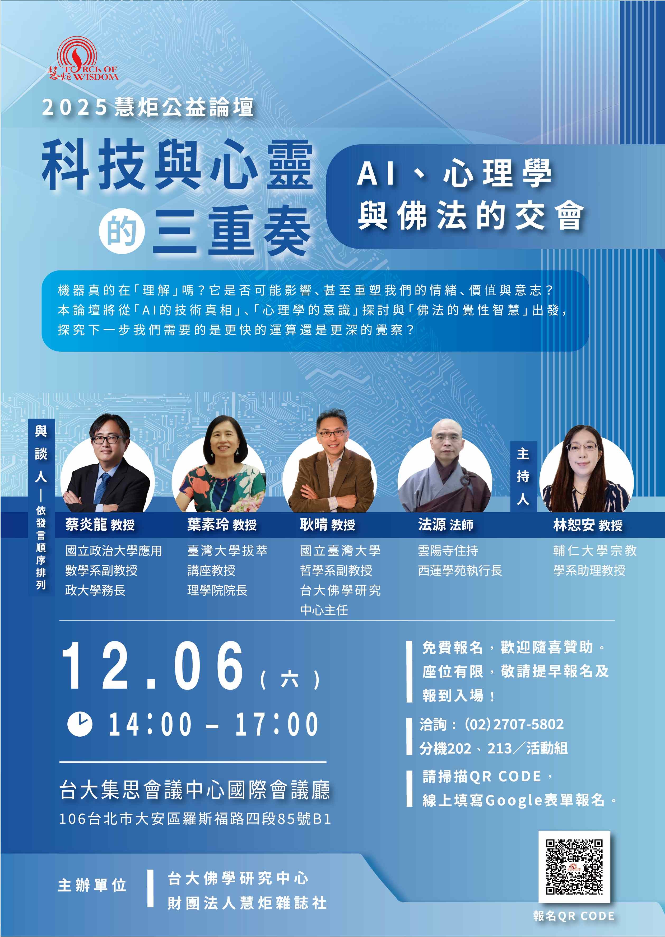 主辦單位:台大佛學研究中心、財團法人慧炬雜誌社