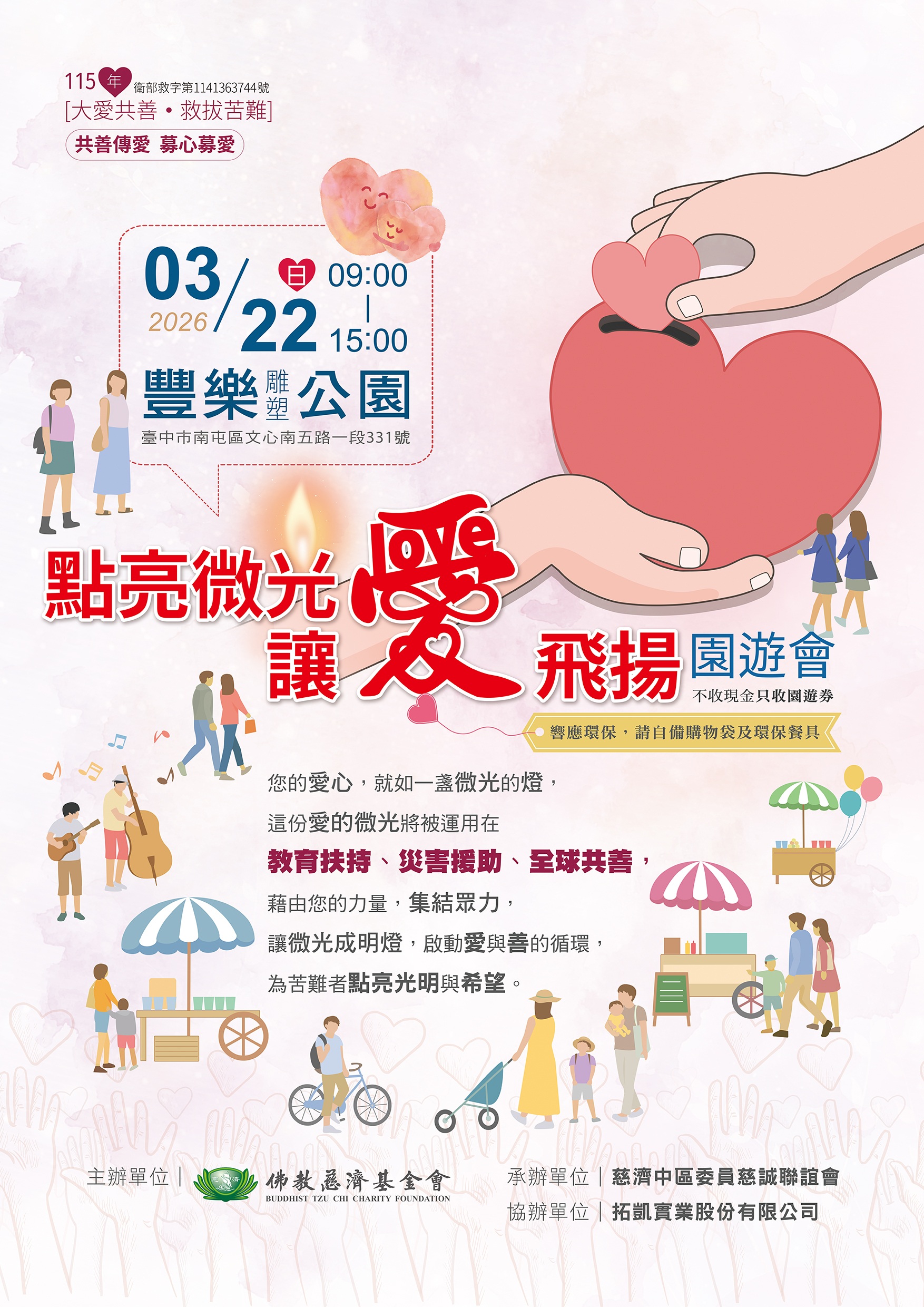 【臺中】大愛共善・救拔苦難園遊會 分享好友 2026/03/22 17:27 ( 03/22 17:27更新) 【大愛共善・救拔苦難園遊會】 時間:2026 年 3 月 22 日 (週日) 09:00 - 15:00 地點:臺中市豐樂雕塑公園 關鍵時刻:10:13 一人一善・敲響平安鐘 登入後可以閱讀全文 關鍵字: 臺中 分享好友 喜歡我們的文章嗎?歡迎加入慈善新聞網