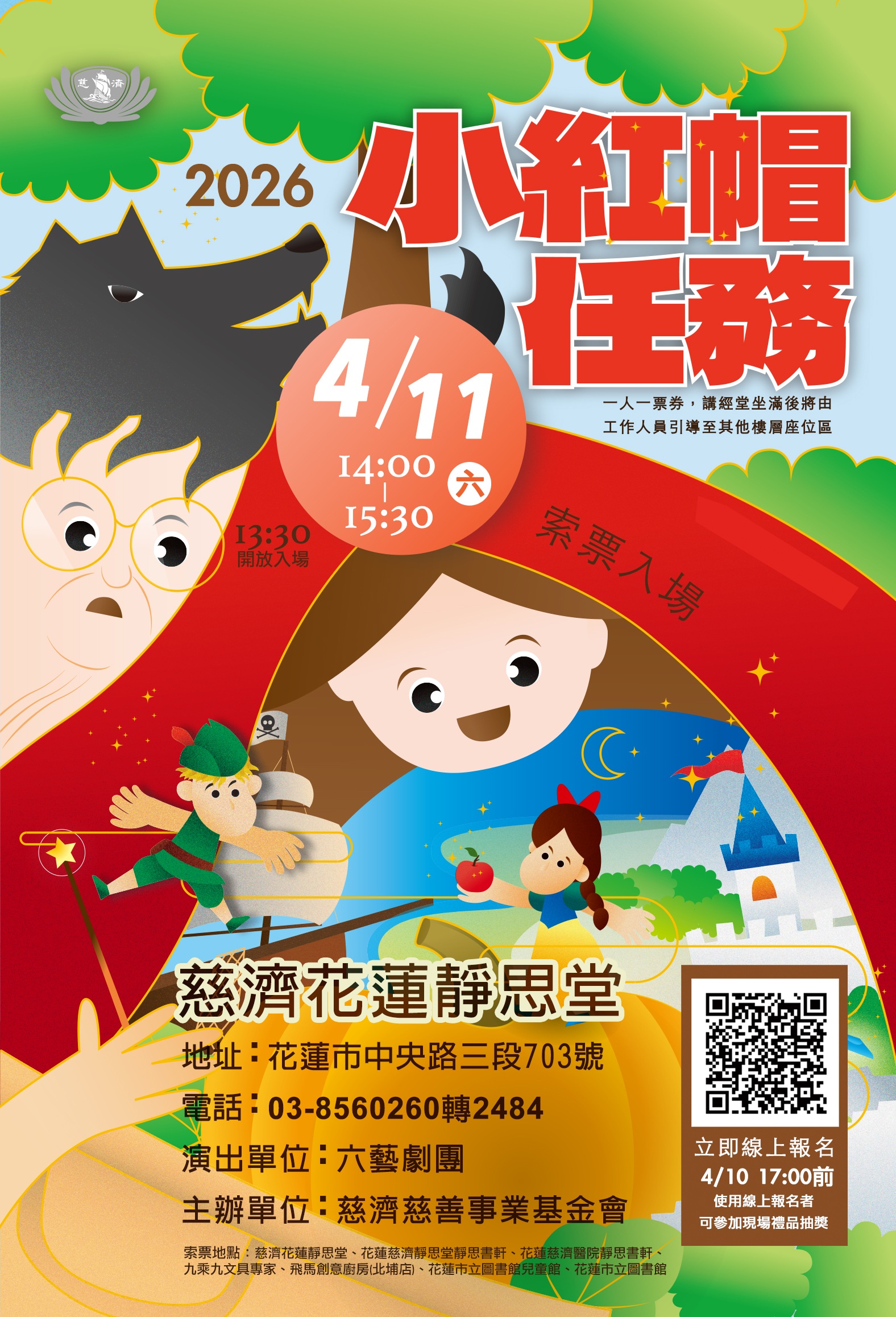 歡迎爸爸媽媽們帶著小朋友,一起來花蓮靜思堂看小紅帽出任務吧!