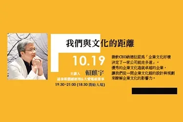 【心靈講座】我們與文化的距離活動資訊 微軟CEO納德拉認為「企業文化好壞決定了一家公司能走多遠」。優秀的企業文化造就卓越的企業,讓讓我們從一間企業文化館的設計與規劃來瞭解企業文化的影響力。 |活動日期:2019/10/19(六) |活動時間:19:30~21:00 (1...