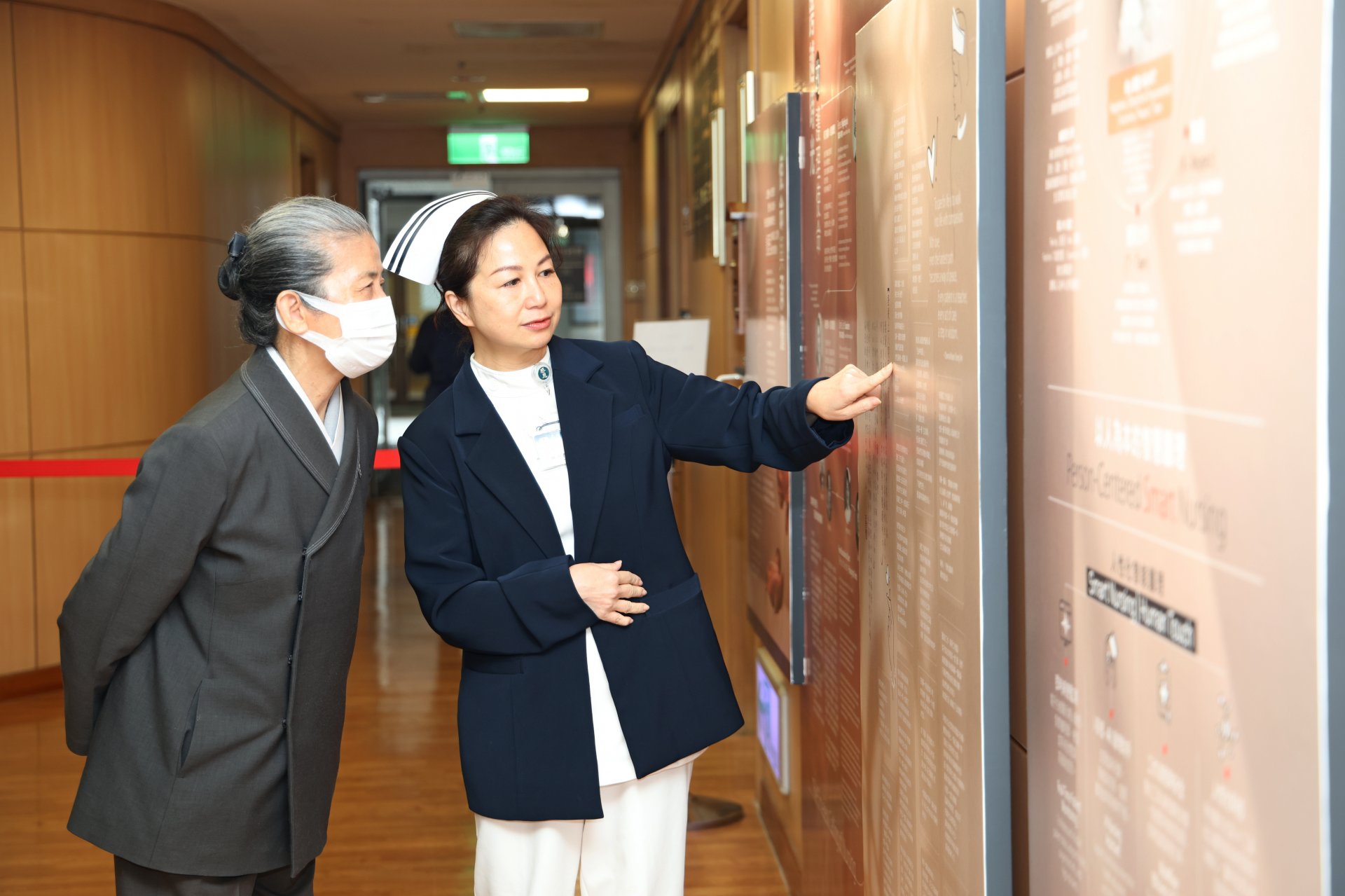 典禮上包括慈濟醫療法人副執行長郭漢崇、主秘陳政興、護理委員會主委章淑娟、花蓮慈院院長林欣榮、副院長羅慶徽、顧問王棋、護理部主任鍾惠君、志工室主任顏惠美,以及慈濟大學護理學院院長彭台珠等貴賓共同出席見證。負責護理人文走廊策展與設計的新加坡慈濟志工莫濟協師兄與蕭慈力師姊,也透過視訊連線參與揭幕,歡喜送上祝福。