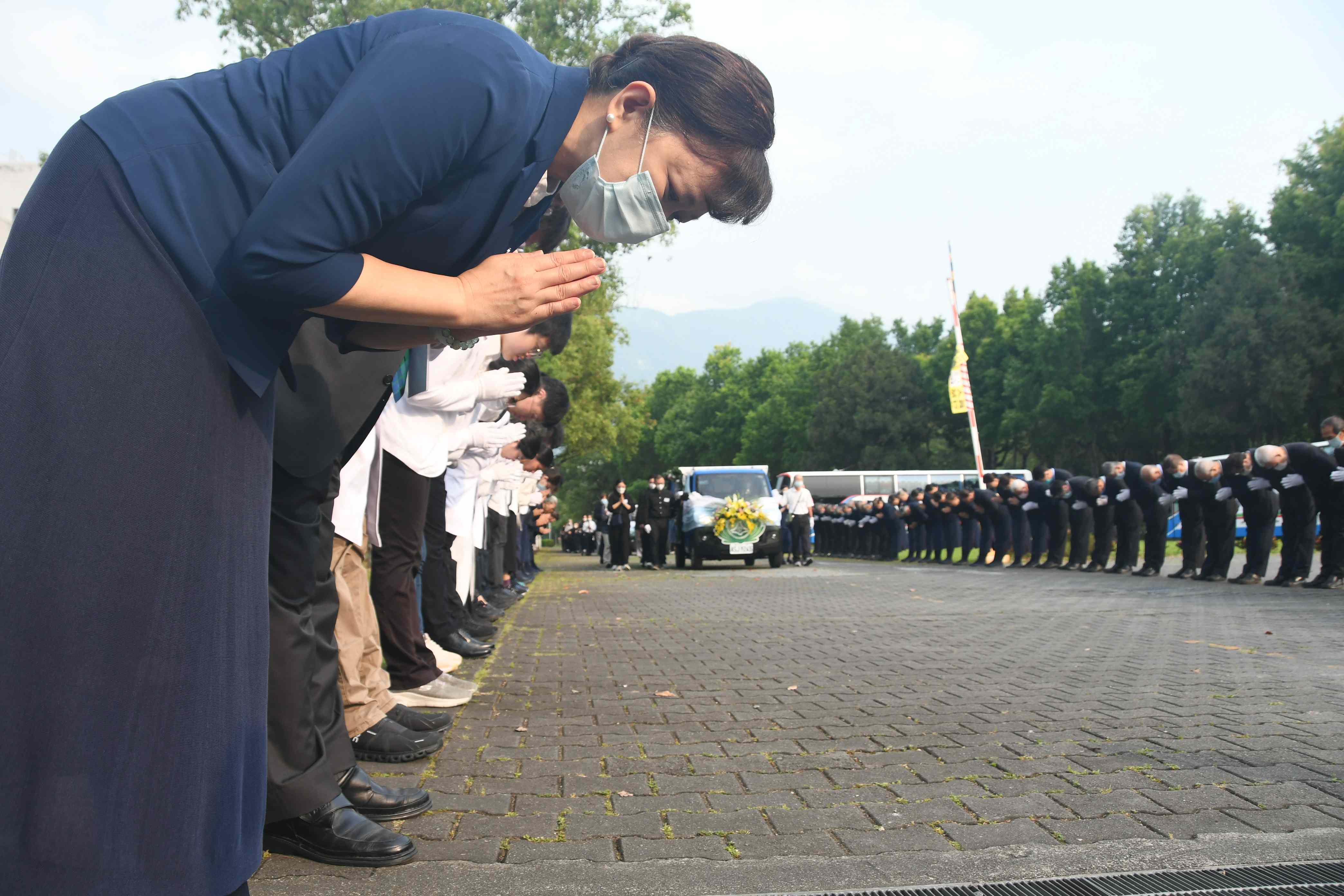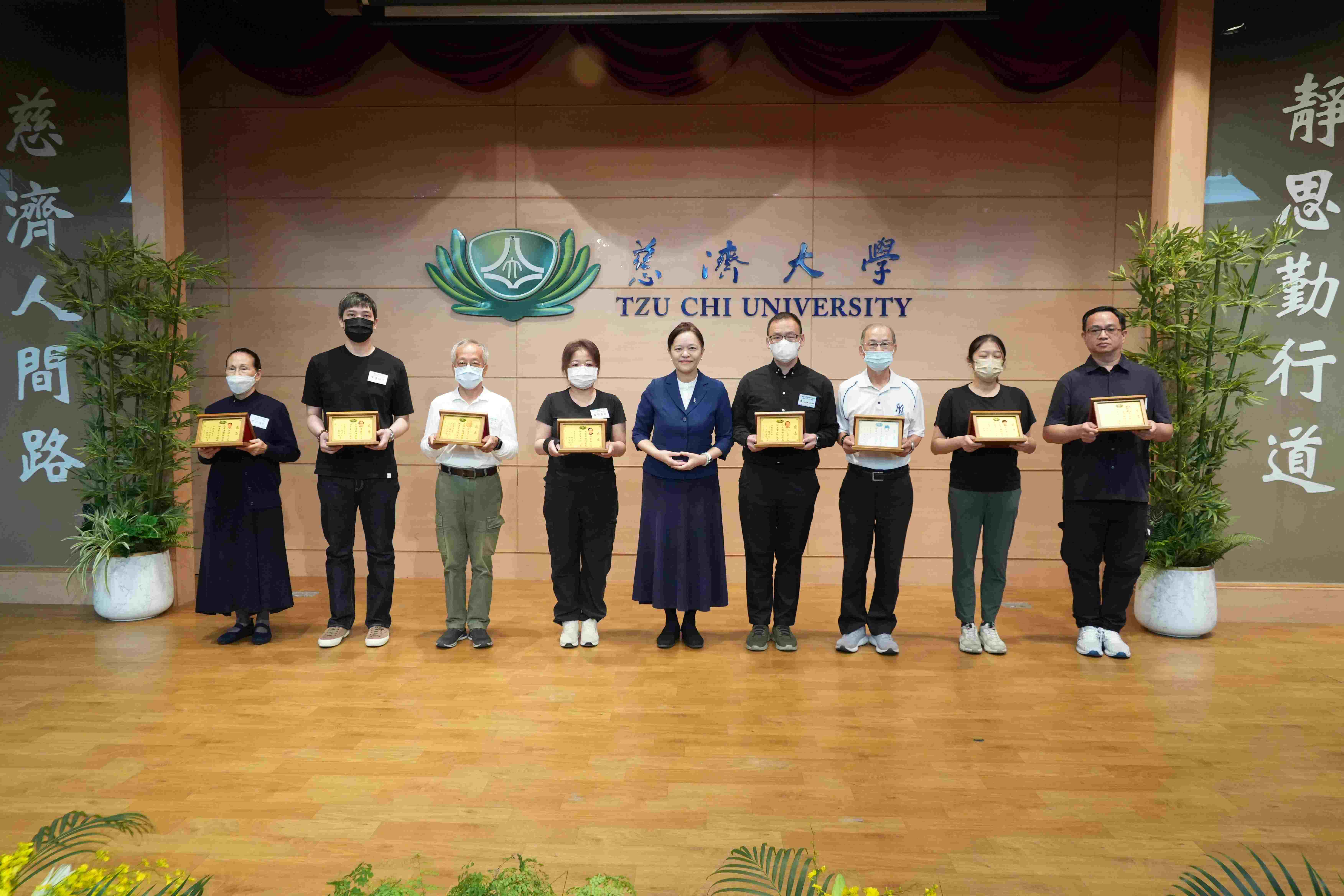 慈大劉怡均校長致贈感恩紀念牌給每一位家屬,並表示無語良師為大家上了最後一堂生命教育課,讓大家重新思考醫療的本質與生命的意義。全體醫師合唱「感恩的心」感恩無語良師與家屬的大愛。
