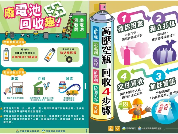為加強高壓容器回收率,並讓民眾瞭解高壓容器正確且安全的回收方法。花蓮縣環境保護局與販賣業者聯手,將於3月23日上午9時30分至11時30分,在統冠聯合生鮮超市美崙店(花蓮縣花蓮市化道路11號)舉辦「回收換好禮 ...