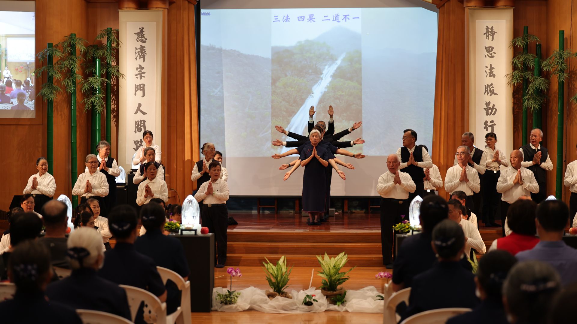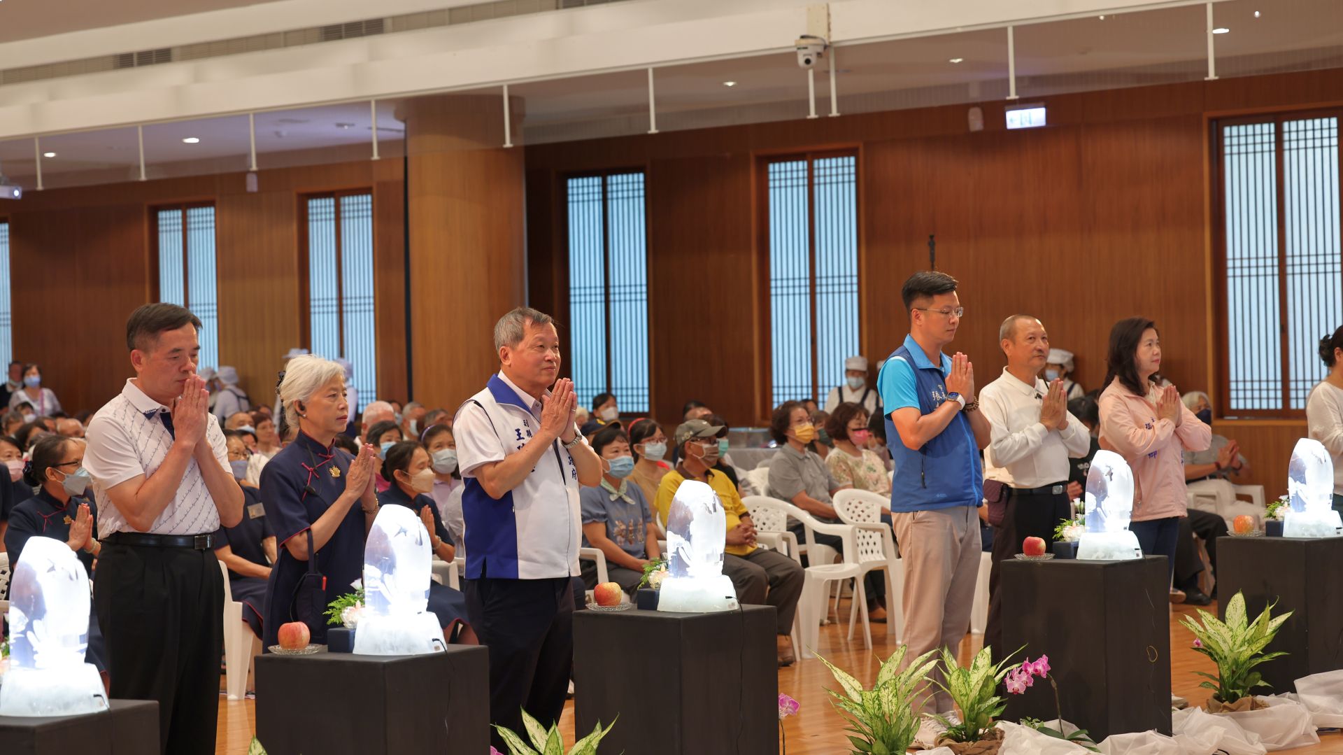 清晨,佛堂內梵唄聲起,香煙裊裊。南投縣長許淑華親臨來獻供,帶領大眾點燃心燈、獻上鮮花果實,凝聚了在地鄉親的虔誠,展現了社區的溫暖。會眾雙手合十,隨著莊嚴的佛號聲唱誦,感受到心靈滌淨與法水清涼,共同祈求人人平安吉祥。