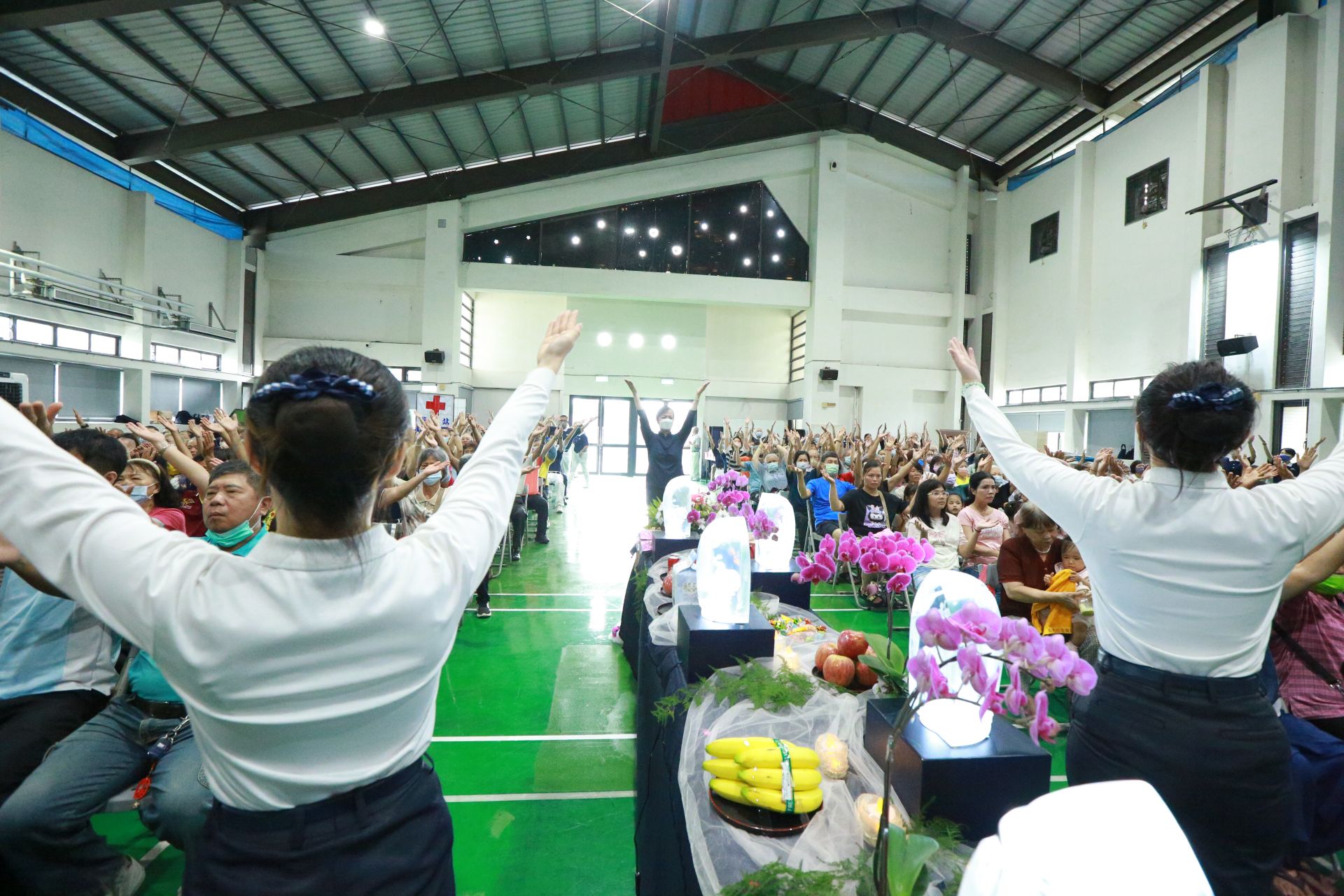 首先由貴賓二十四人,以供齋儀式引領進入祥和祈福法會。帶動現場近六百人,合掌恭敬祈請諸佛菩薩、龍天護法雲來集,參與這場盛會。