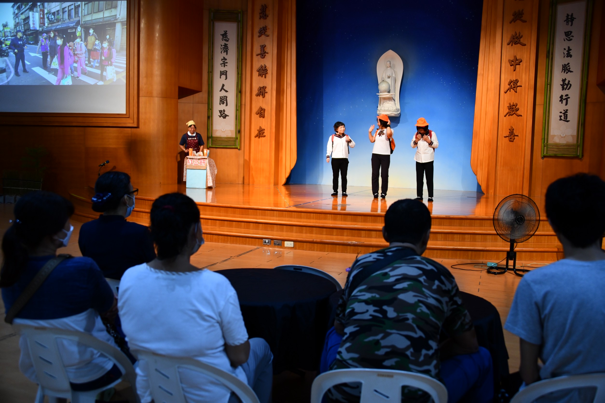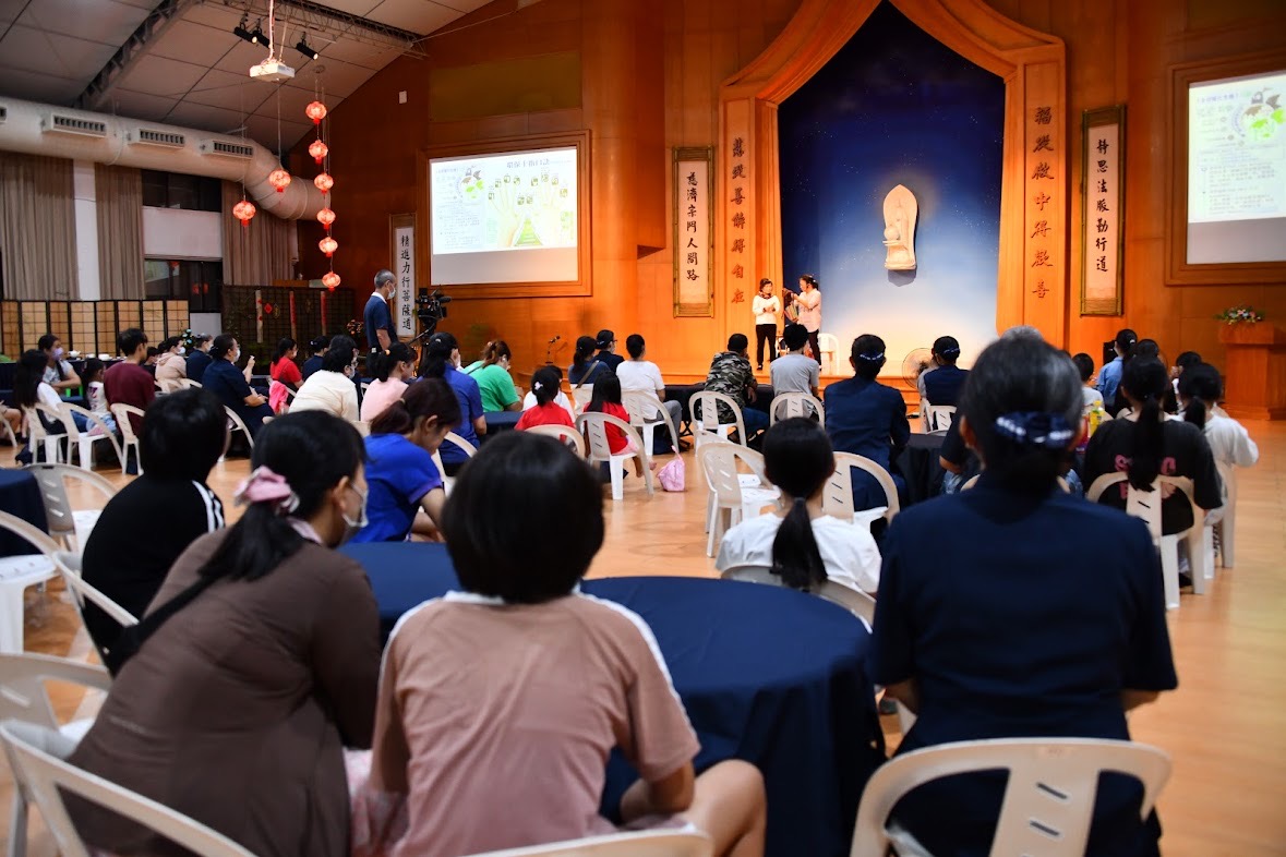 慈濟教育功能組隊的大愛媽媽們演出舞台劇《婉兒的一天》,讓孩子們從短劇情節呈現,學習生活禮儀與環保概念,隨身攜帶環保餐具,避免使用一次性的餐具。短劇結合有獎徵答,引導孩子思考「如何愛護生命與地球」?將環保教育融入中秋佳節,讓學生們從小就能重視環保的重要性。