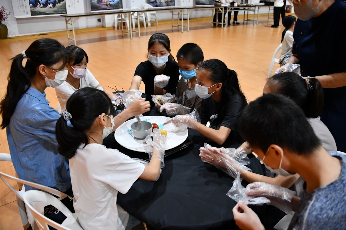 節目有古箏音樂結合空靈鼓演奏老歌,也有古琴演奏,讓參與者在聆聽悠揚音樂的氛圍中沉澱心靈。手作月餅由志工示範教導親子操作,口味有巧克力、紅豆、抹茶、綠豆沙、數種,小朋友在手作的過程中各自發揮創意,更體驗物資來之不易。大家現場享用自己做的月餅,可以分享,也可以帶回家跟家人享用。
