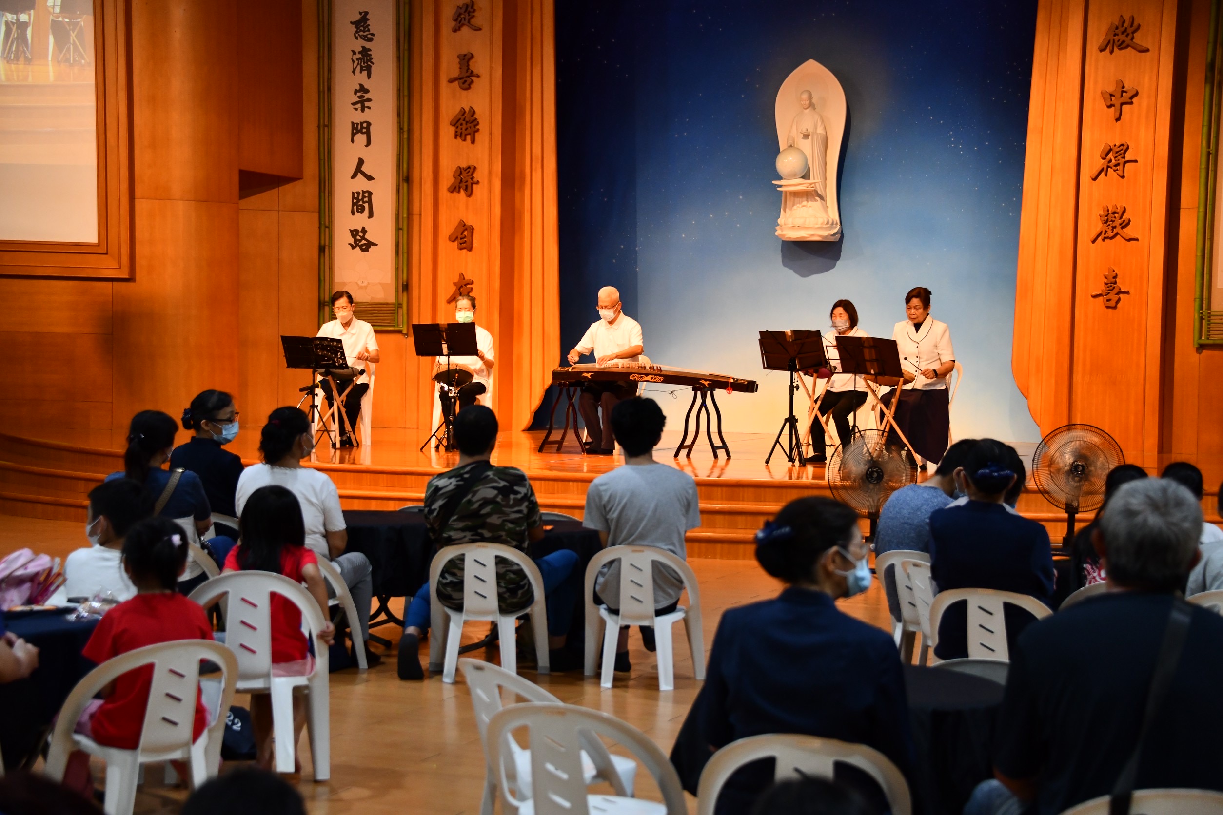 多名人員包含退休校長、教師來現場為大家彈奏古箏、古琴增添活動精彩;聆聽之餘,放鬆心情。在親子共樂,共聚團圓活動中,透過手作月餅、茶席體驗,營造家庭同樂氛圍,讓家人一同參與、提早慶祝中秋佳節,體會團圓和樂的美好。