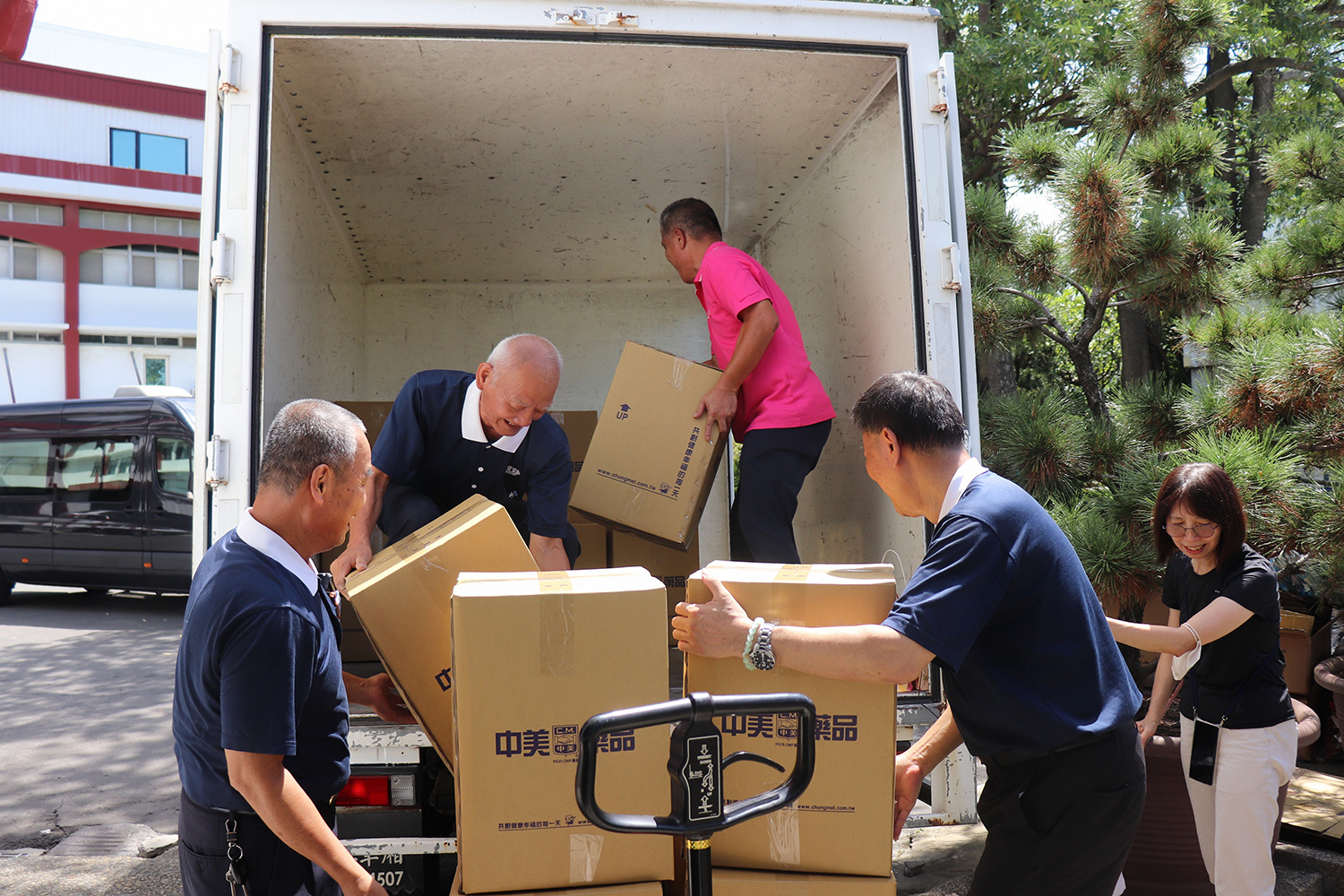 包裝工作在十一點前完成,志工盧惠貞代表慈濟接受捐贈。隨後由中美公司的司機及兩位慈濟志工,專車將1430分「健康隨身包」,火速送抵災區,盼能為受災民眾與前線救援人員,帶來即時援助。