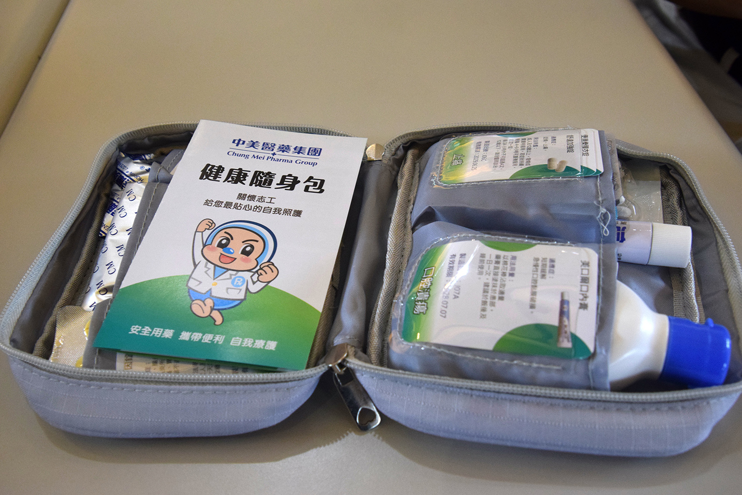 健康隨身包內含基本的常備用藥,如感冒藥、胃藥、便祕藥、止痛藥和皮膚用藥等。