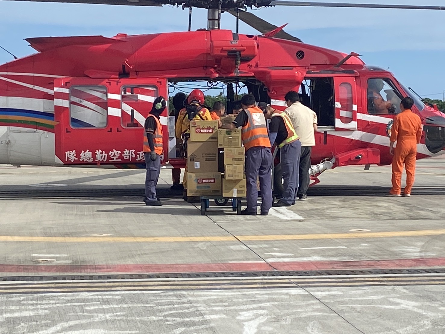 受樺加沙颱風豪雨影響,臺東縣海端鄉利稻村多處道路坍方,造成交通中斷,居民生活物資補給不便。為保障部落民眾日常生活,縣府緊急向內政部空勤總隊申請協助,並於26日出動直升機空運熱食、罐頭、料理包、泡麵、水及保久乳等營養飲品,一同送往海端受災村落。
