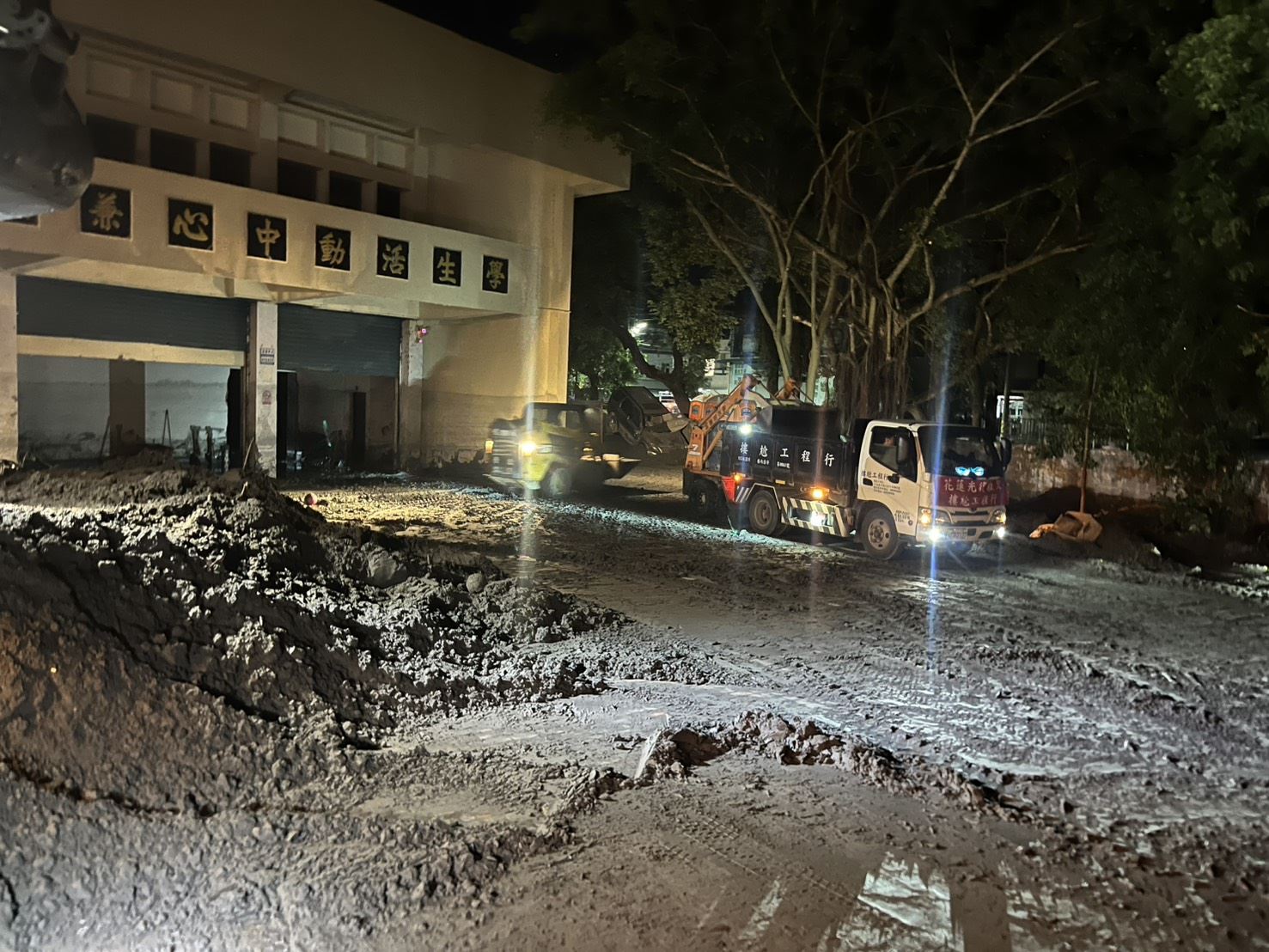 新竹縣政府教育局則迅速動員,媒合2組大型重機具團隊,包含怪手、山貓、斗車、抓斗車與鏟土車等重型設備,馬上進駐光復國中清淤現場。青年事務科更號召18位青年志工,自備高壓清洗機等工具,從10月4日至6日奮戰在校園每一處角落,用汗水與行動寫下最年輕卻最堅定的承諾。
