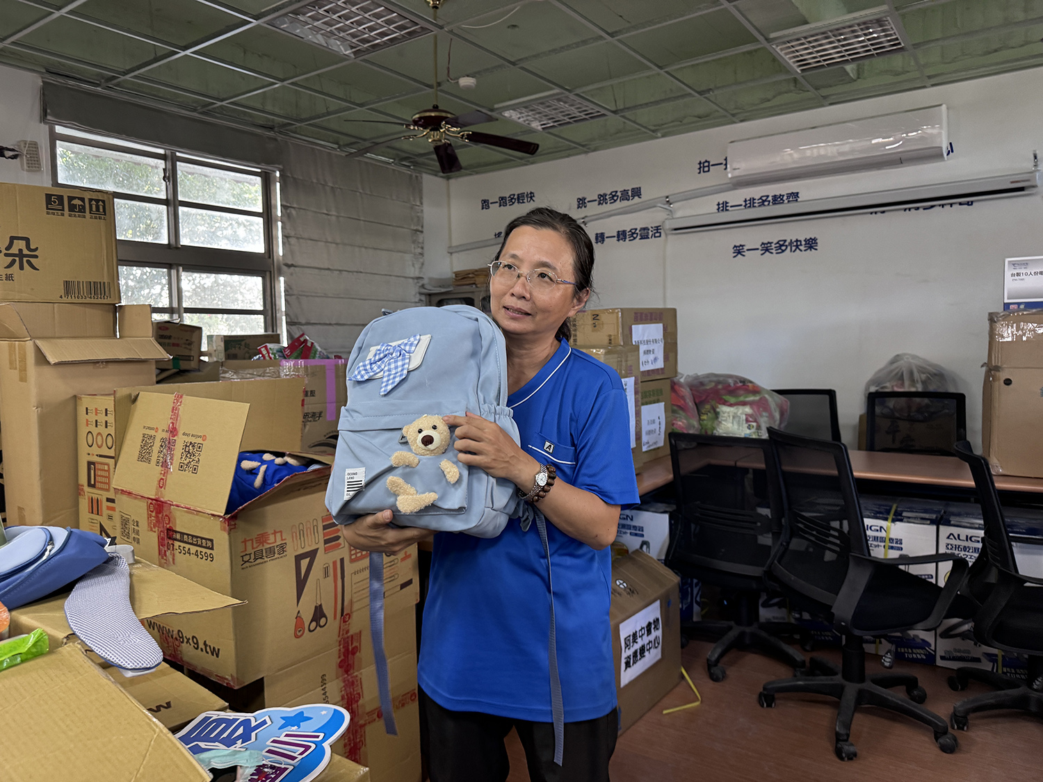 光復國小黃彤芳校長拆箱說:中高年級的書包很帥氣,低年級的很可愛。黃彤芳校長表示,災害後我們請老師幫忙了解學生的需求,包含制服、文具等等,希望讓孩子復學時沒有罣礙或遺漏。感恩各界的愛心,小朋友遇到這麼大的災難,不同的文具對小孩子的意義不同。希望他們可以很快樂的上學,不會少制服跟文具,上學該用的東西,謝謝各界包含教育處、慈濟幫忙各種資源。