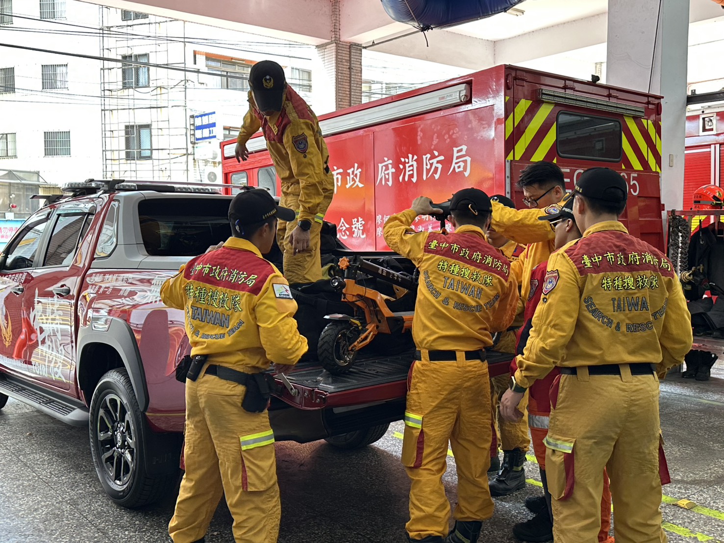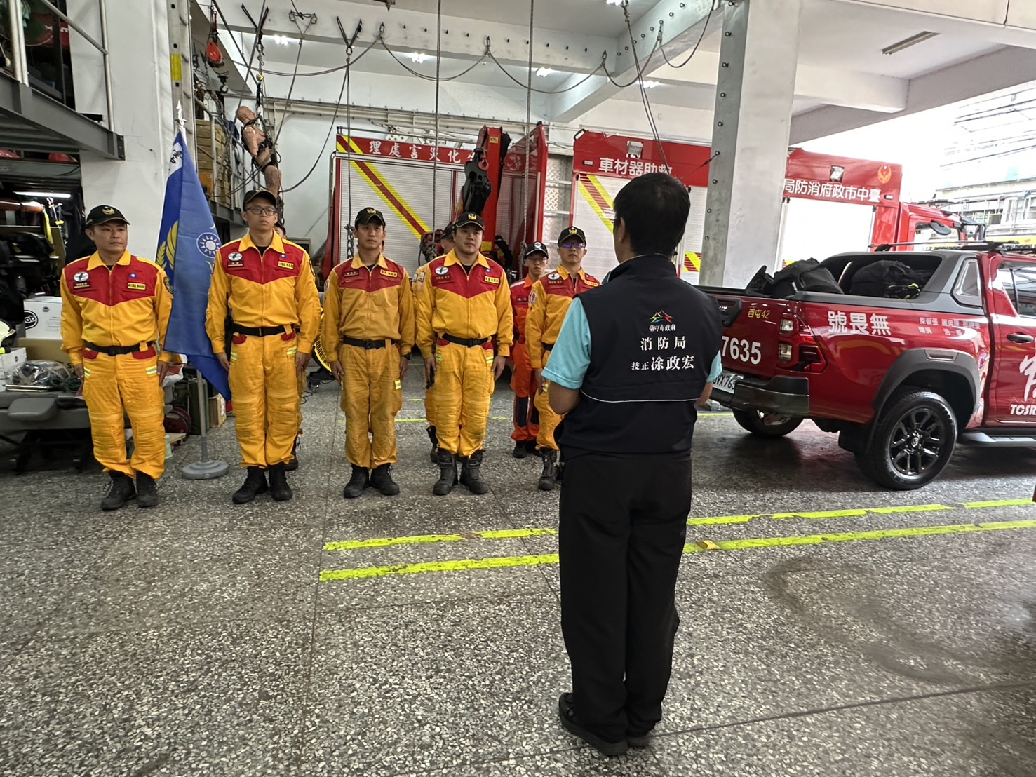 消防局補充,今(6)日火速出動4車特種搜救隊、10名專業搜救人員及1隻搜救犬,於下午12時40分自西屯分隊整裝出發,支援花蓮地區搜尋任務,此次出勤人員攜帶水域救援、繩索救助等專業裝備及空拍機,並搭配搜救犬協助搜索,將依現場指揮系統任務分配,強化搜尋範圍與效率。搶救科技正凃政宏向特搜隊員行前勉勵,叮囑任務安全第一,期勉全體人員全力以赴、平安歸來。