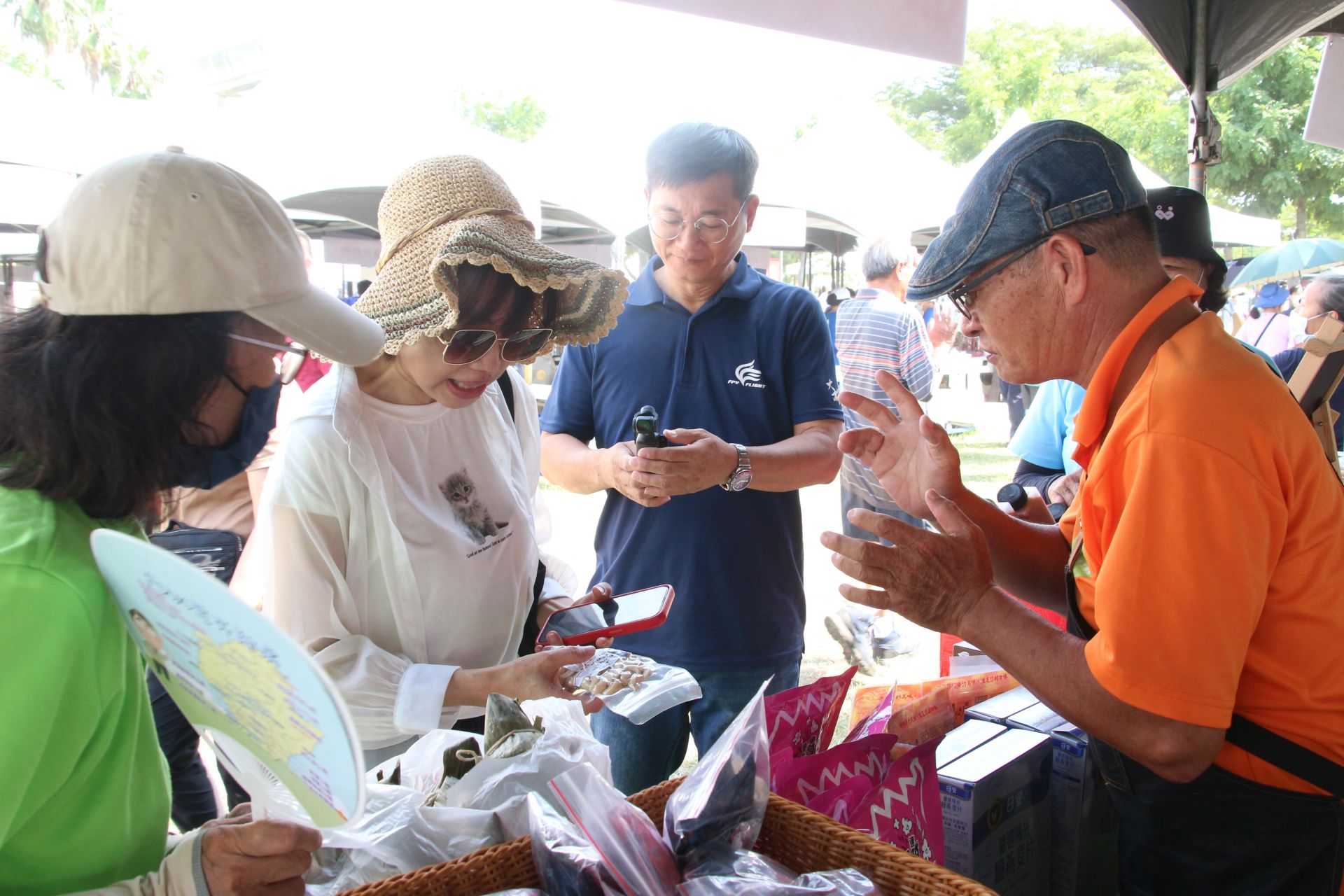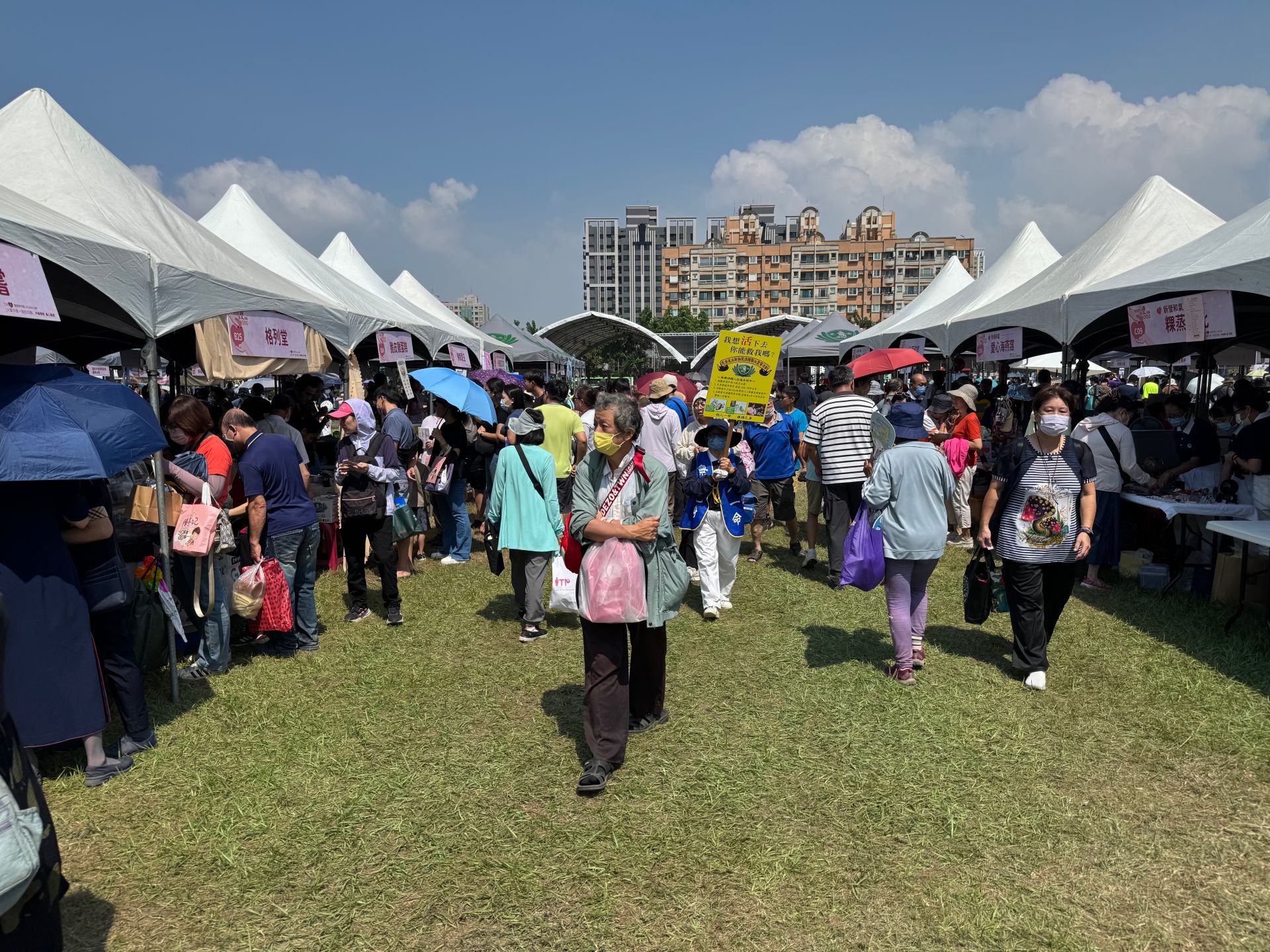 陽光普照白色歐式帳棚連成一片清涼海,人潮湧動,香氣四溢的蔬食美食與創意手作義賣吸引民眾駐足。攤位商品琳瑯滿目,有志工的私房菜、攤商製作的特殊料理,飄香的素米糕、滷味、芋頭冰、咖啡......應有盡有。事前的宣導,現場只見民眾自備環保餐具、購物袋,響應「茹素護生、愛地球」的理念,讓善行更具綠意。人流穿梭其中,愛心鑼聲不時響起——那是善心的節奏,每一聲都象徵一分愛的流動。