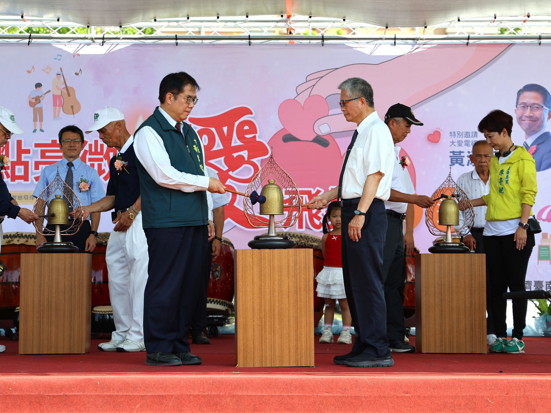 台南下營區賀建國小三十位鼓兒在校長何銘倫及老師帶隊下,舞台上昂首挺立,雙手揮舞鼓棒,鏗鏘有力的節奏,如雷的鼓點在廣場間迴盪,震撼人心。鼓聲之間,旗幟翻騰舞動,象徵祥瑞與活力,彷彿將滿滿的祝福與善意送進每個人的心中,為這場凝聚愛與希望的園遊會揭開序幕。