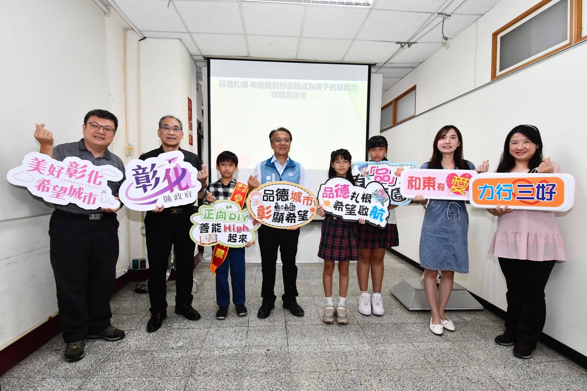 彰化縣政府教育處17日上午於縣府6樓咖啡藝廊,舉辦「彰化縣114年度品德扎根‧希望啟航—好品格成為孩子的超能力」媒體座談會,邀請獲獎品德特色學校代表校長及大使參與分享,現場同步展示《校園馨語小故事》實體書及電子書、品德特色學校易拉展等推動成果,展現本縣深耕品德教育的具體行動。